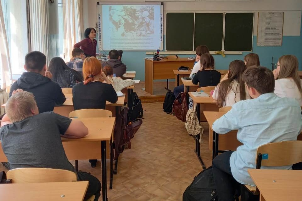 Школьникам рассказали о женщинах – Героях Советского Союза. Летчицы полка ночных бомбардировщиков Наталья Федоровна Меклин, Руфина Сергеевна Гашева, Мария Ивановна Долина на своих легких самолетах по ночам бесшумно, на бреющем полете, появлялись над важными объектами врага и уничтожали их. За это фашисты прозвали их «ночными ведьмами». Лидия Владимировна Литвяк, летчик-истребитель, в одном из воздушных боев под Сталинградом сбила самолет, который пилотировал опытнейший немецкий летчик-ас. Ее называли «Белая Лилия», потому что она предпочитала, чтобы ее звали не Лидой, а Лилей и на фюзеляже своего самолета рисовала за каждый сбитый ею фашистский не звездочку, а белый цветок лилии.