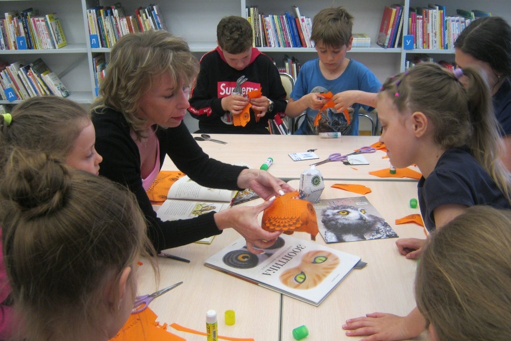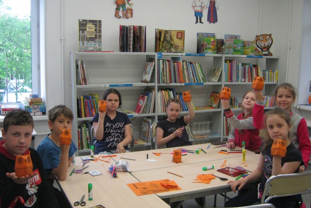 К примеру, 28 мая творческая мастерская в библиотеке 8 началась с загадки: «В лесу темно, все спят давно. Одна птица не спит, на суку сидит, мышей сторожит». Дети хором ответили, что это сова. И сразу стали рассказывать, кто и где видел живую сову.