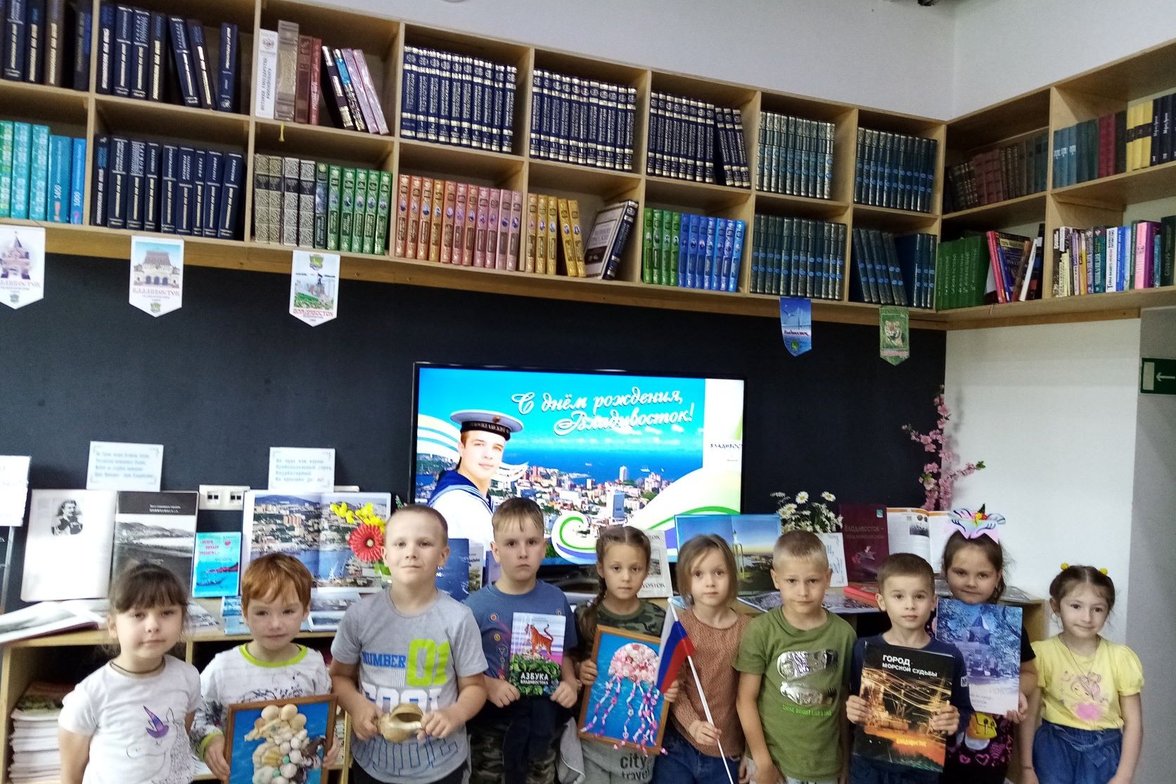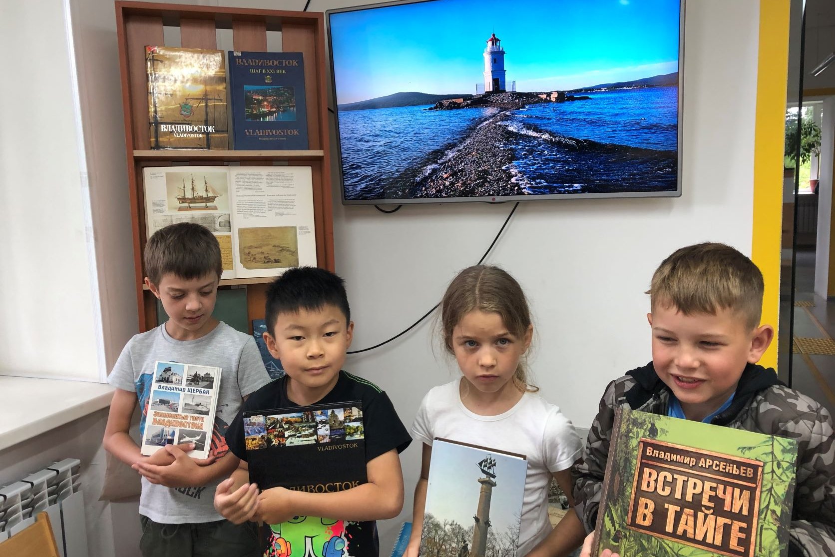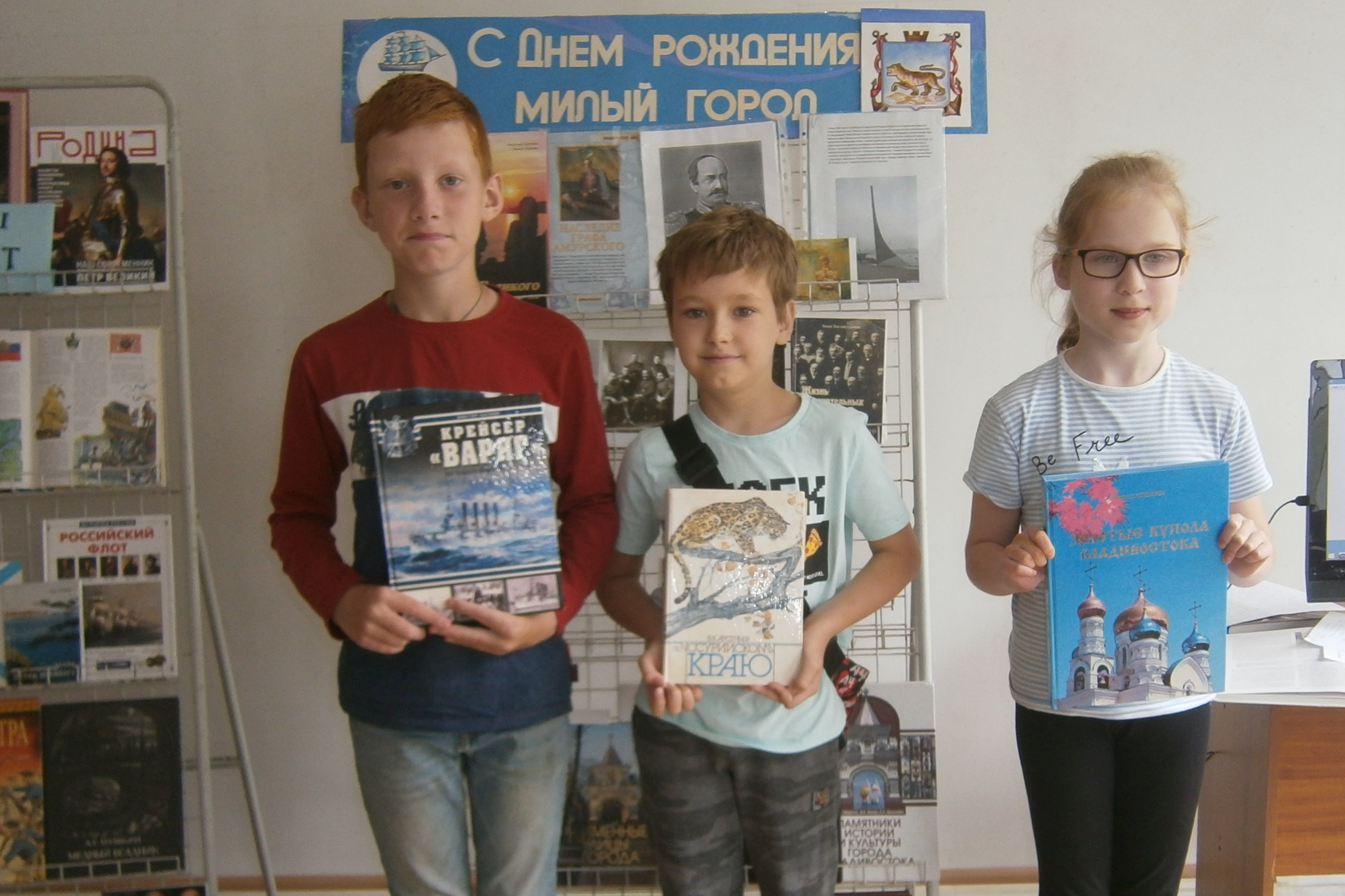 В эти дни особенно популярна у читателей детской библиотеки №5 была книжная выставка «Так начинался Владивосток». Дети разного возраста с интересом рассматривают фотоальбомы «Сердце океана», «Старый Владивосток», «Владивосток. Путь события», книги с выставки краеведческой литературы, путеводители по городу разных лет издания.