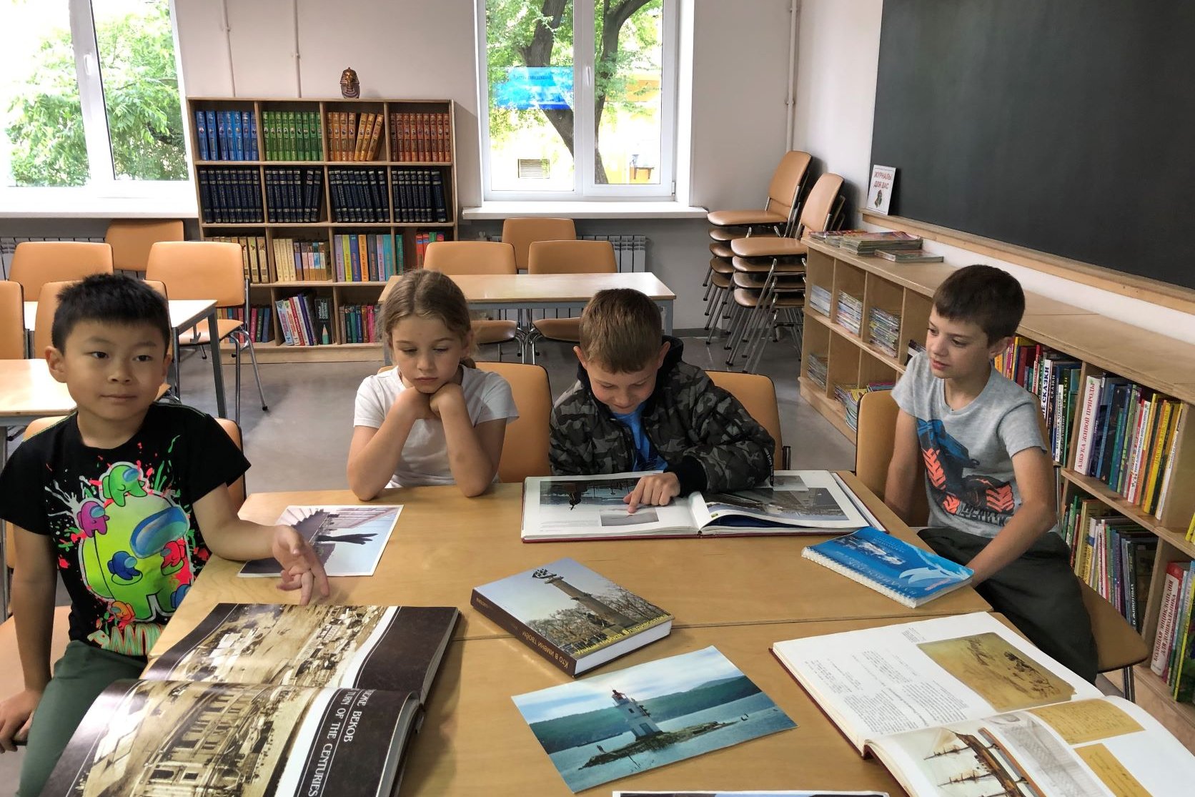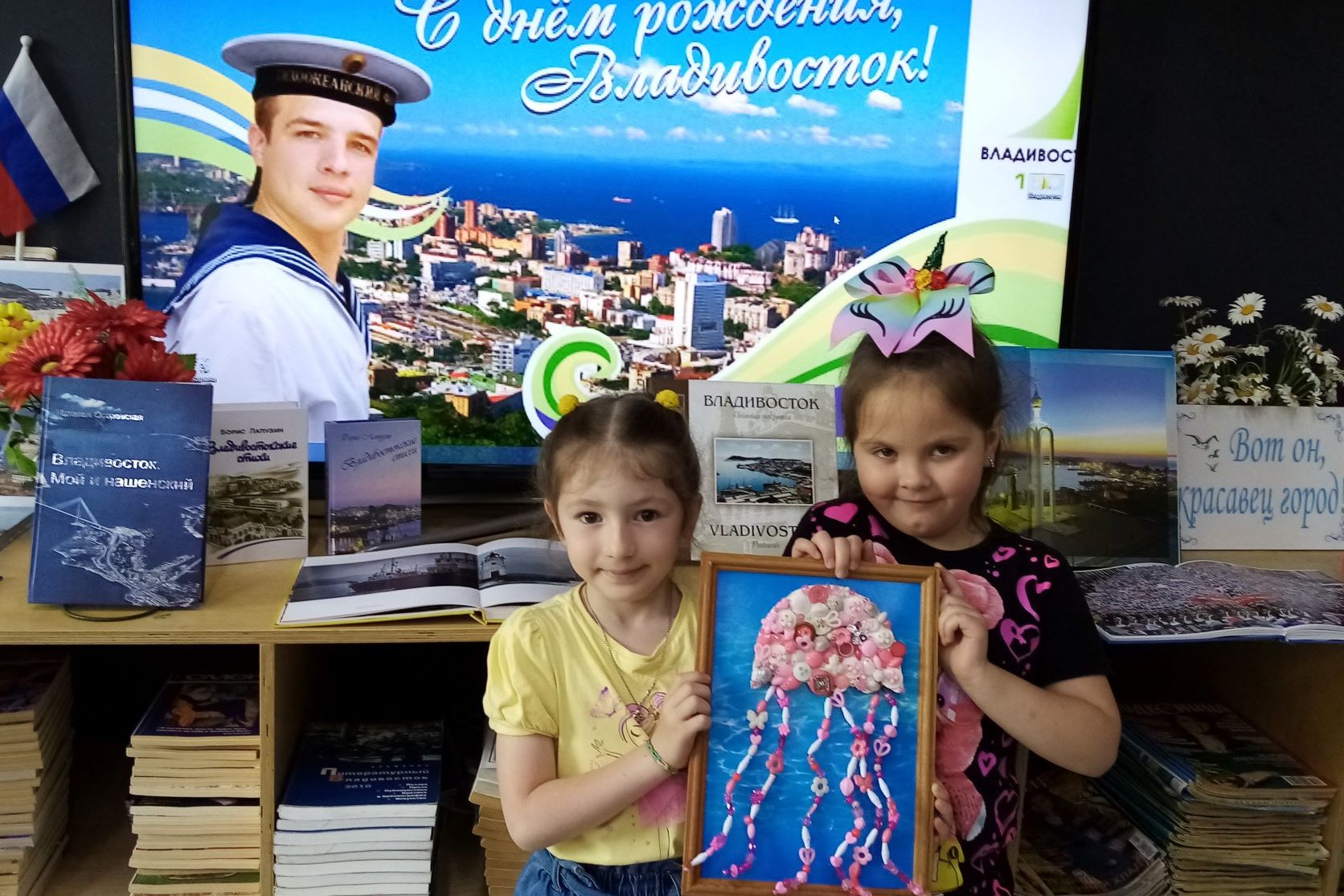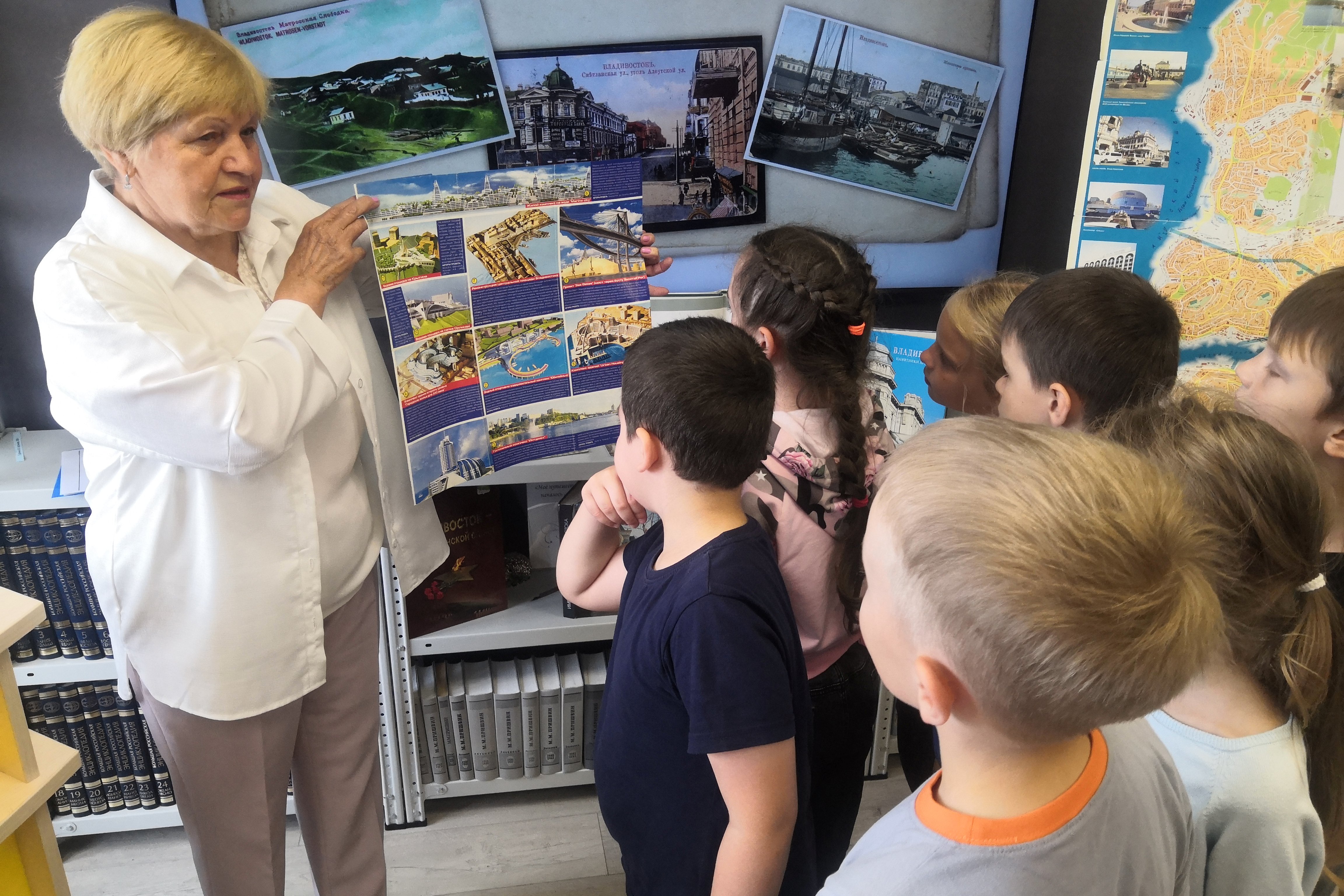 В эти дни особенно популярна у читателей детской библиотеки №5 была книжная выставка «Так начинался Владивосток». Дети разного возраста с интересом рассматривают фотоальбомы «Сердце океана», «Старый Владивосток», «Владивосток. Путь события», книги с выставки краеведческой литературы, путеводители по городу разных лет издания.