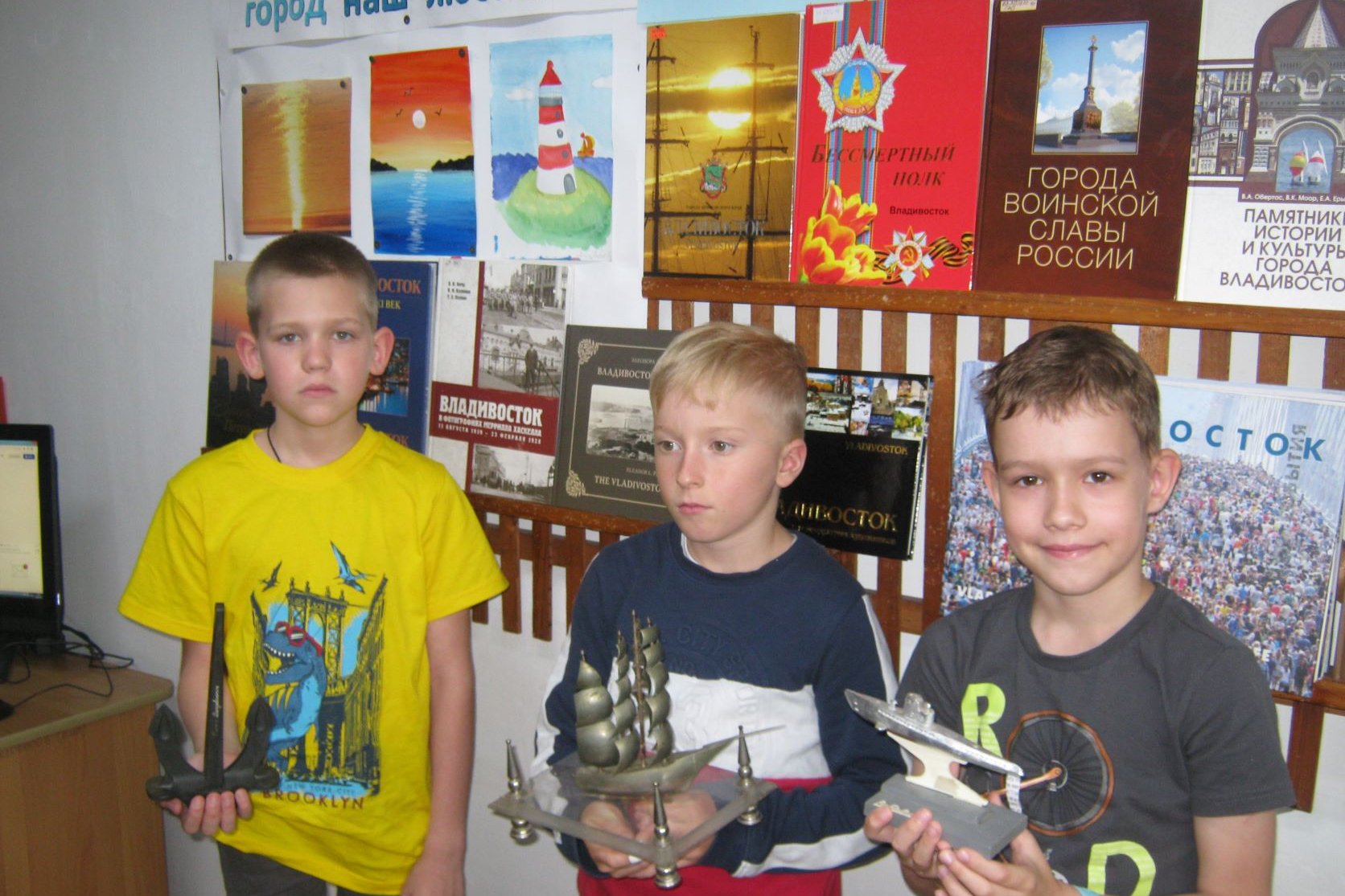 Ребята из группы продленного дня «Умная продленка» посмотрели презентацию об основателях Владивостока и памятных местах нашего города, одновременно рассматривая фотоальбомы и отвечая на вопросы: как называются мосты Владивостока, на каком полуострове расположен микрорайон Эгершельд, какой цветок символизирует Владивосток, кто изображен на его гербе? От стелы на Корабельной набережной, посвященной основателям Владивостока, до Токаревского маяка проходил маршрут воображаемого путешествия.