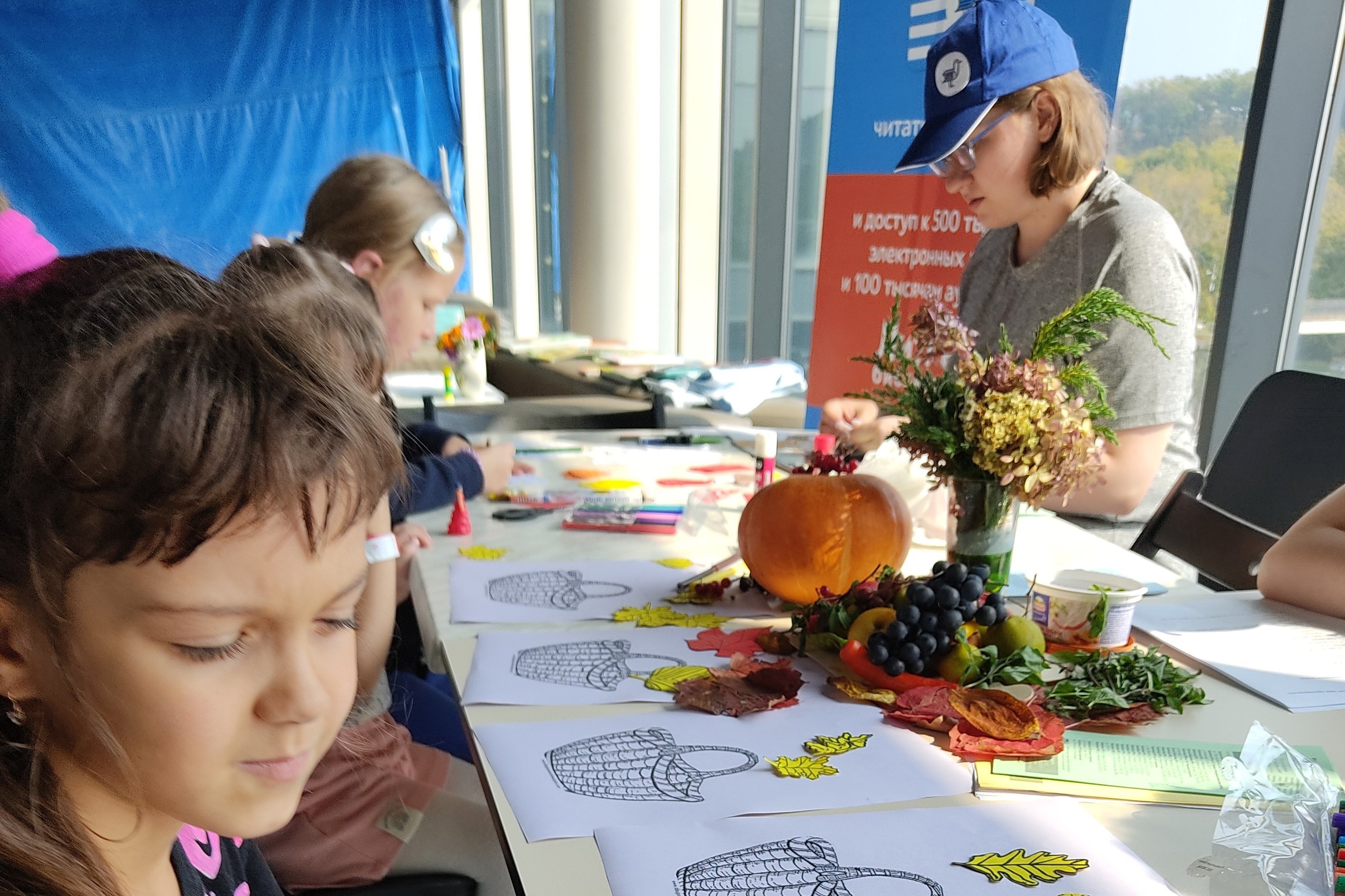 Ребят всегда очень увлекает творческая мастерская, все с удовольствием делают поделки, потому что выбор очень большой – это и мастер-класс по оригами, и раскраски, которые можно просто разукрашивать, проявляя свою фантазию, и аппликации на осеннюю тематику. Больше всего детям понравилось делать ёжиков, а точнее приклеивать разноцветные листики на иголочки и «собирать» лукошки.