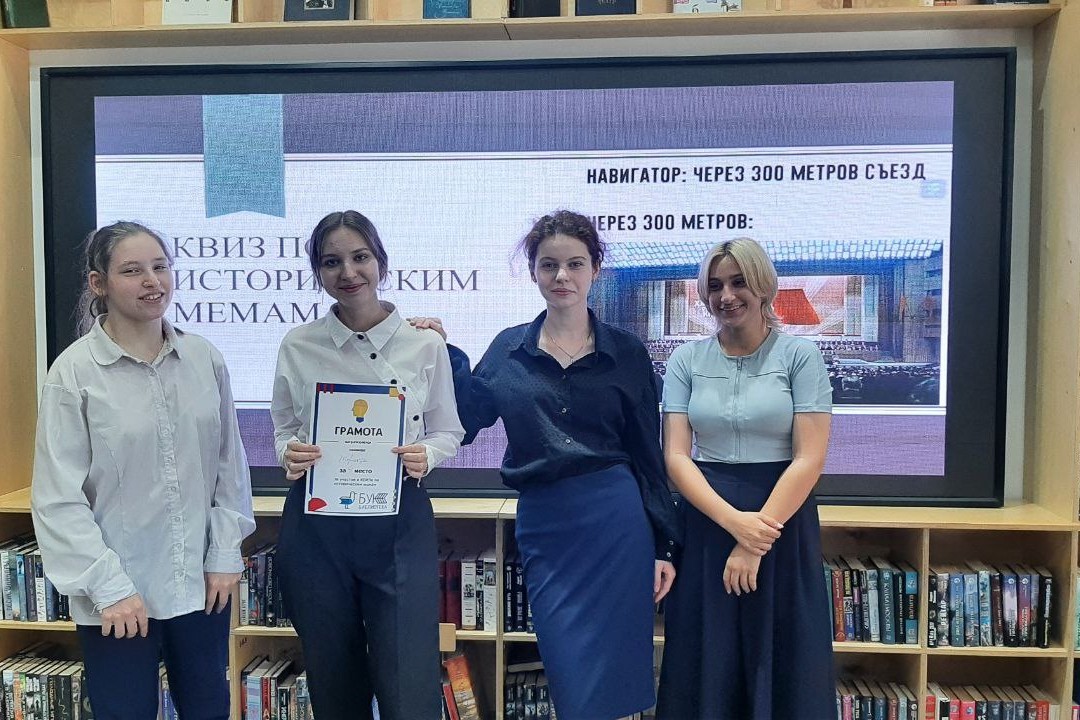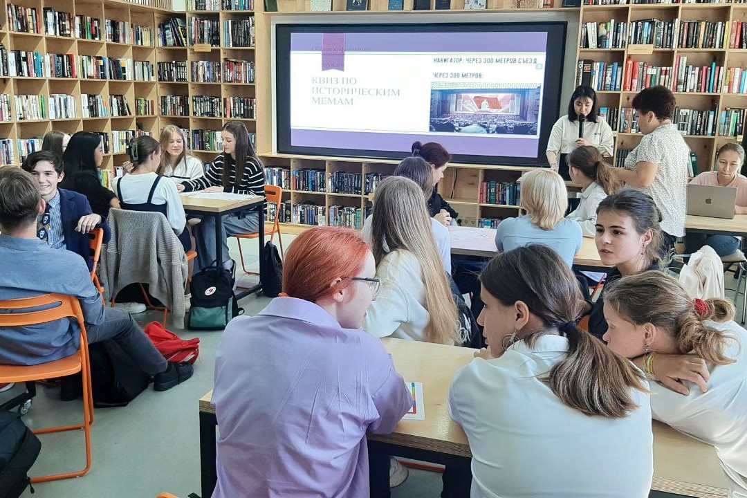 23 сентября в библиотеке БУК между учениками 10 «В» класса Гимназии № 1 состоялся интеллектуальный поединок «Квиз по историческим мемам», который совместно с Департаментом истории и археологии ДВФУ организовали и провели сотрудники библиотеки. Вопросы игры, были специально разработаны специалистами ДВФУ с учетом учебных программ для старшеклассников.