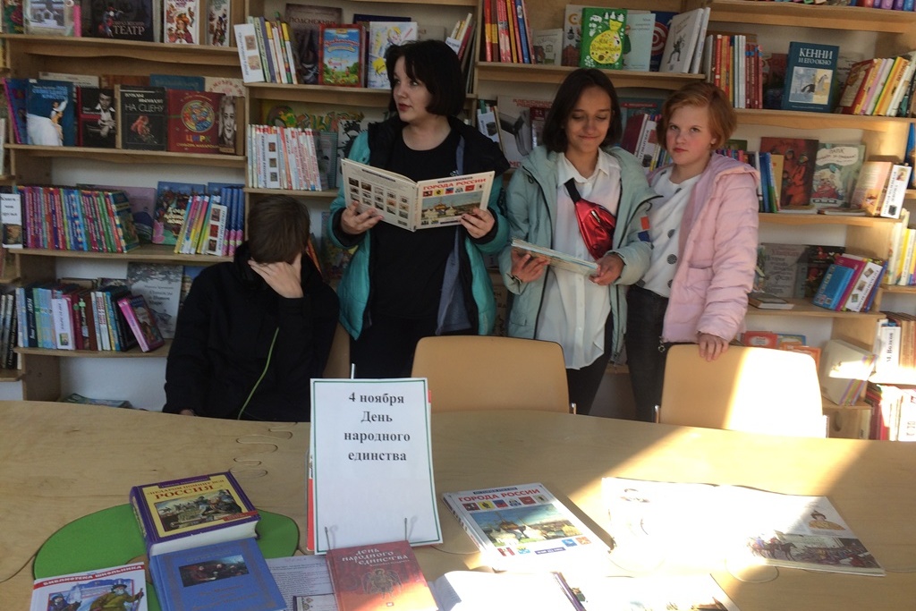 1 и 3 ноября в детской библиотеке №7 в ходе бесед у книжной выставки, посвященной Дню народного единства, дети и подростки вспоминали историю государственного праздника и историю России, отвечали на исторические вопросы нашего прошлого, настоящего и будущего. Вели разговор о воинской славе и доблести, о гордости за нашу Родину и её героев, о милосердии и доброте.