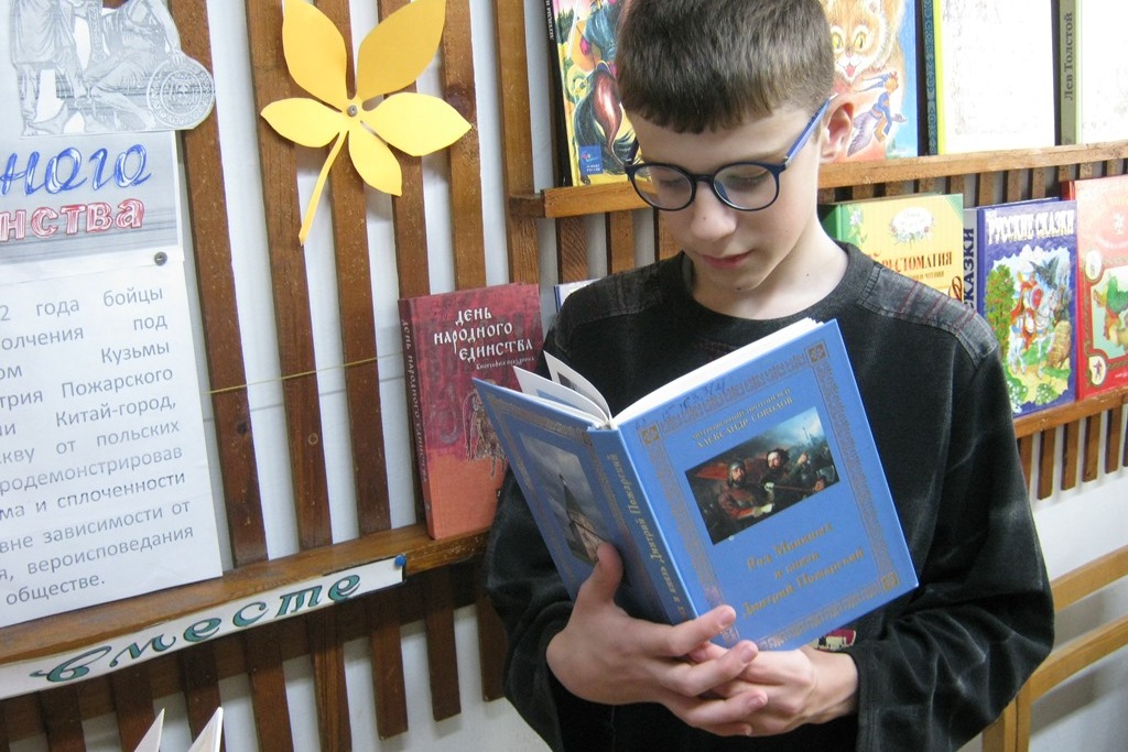 По-настоящему познавательными получились каникулы осени для ребят, посетивших библиотеку №15. 1 ноября практически с утра и до вечера в библиотеке проходила встреча читателей с книгами. 1612 год стал сюжетом многих книг. Читатели — дети, подростки, взрослые с удовольствием листали страницы книг, смотрели презентацию «Год народного единства», с удовольствием обсуждали увиденное, прочитанное. Хотелось бы отметить двух сестричек Пазыловых — семиклассница Мубина и ее младшая сестра, первоклассница Захро. Девочки с удовольствие читали (Мубина), рассматривали рисунки, что не захотели расставаться с книгой Сергея Истомина «Минин и Пожарский», взяли домой, чтобы почитать всем вместе, с братом Хамидом и сестренкой Мунисахон.