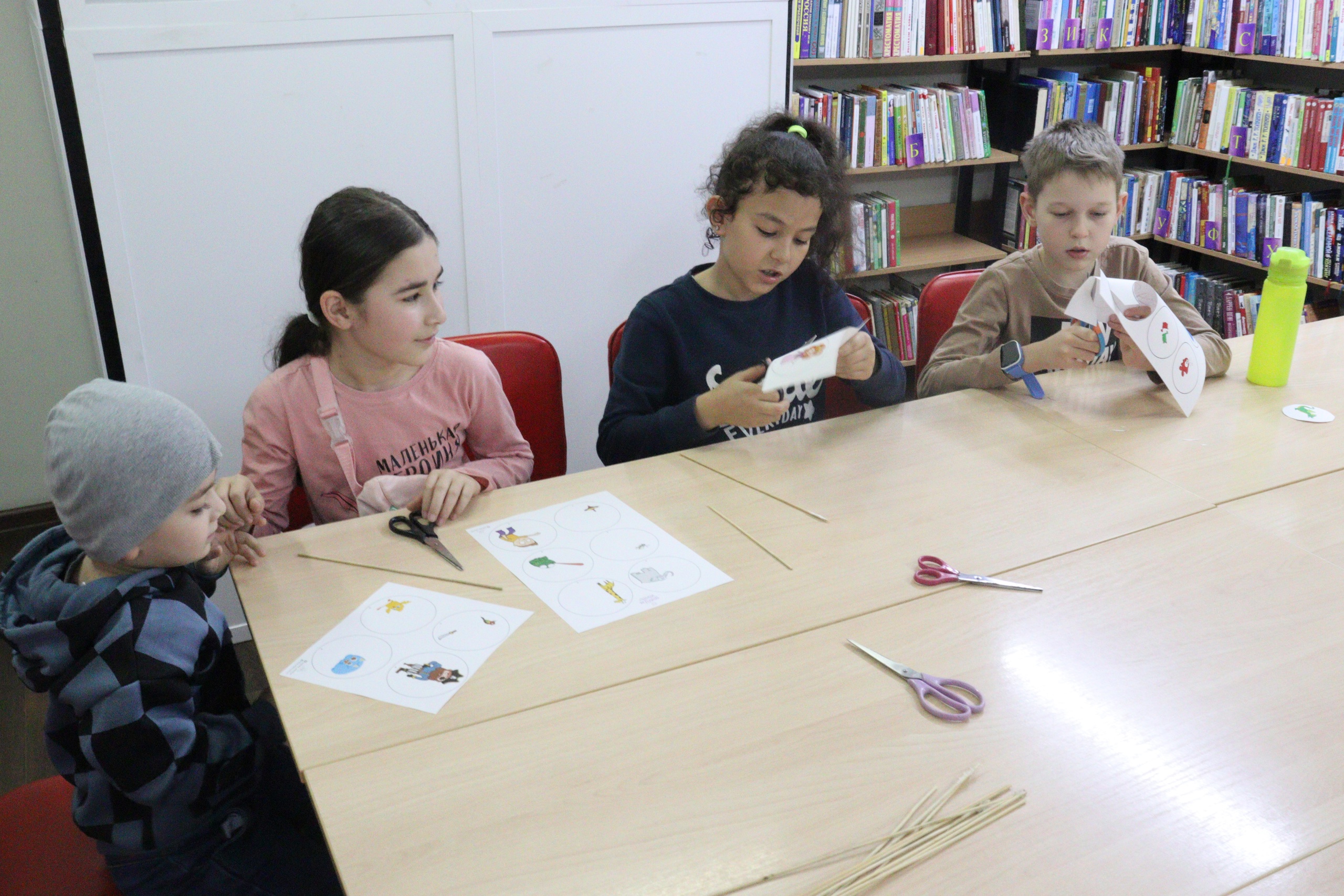 В библиотеке № 4 состоялся 26 октября час познания «Путешествие в мир анимации», посвящённый Международному дню анимации. В этот день библиотека превратилась в место волшебства и веселья, где каждый мог окунуться в мир любимых мультфильмов и узнать что-то новое. Мероприятие началось с рассказа библиотекаря о истории, видах и жанрах анимации. Затем ребята приступили к творческой части программы — изготовлению аппликации-тауматропа. Тауматроп — древнее оптическое устройство, создающее иллюзию движения. Дети сами собирали приспособление, а затем испытывали их в деле, наблюдая за волшебством анимации, которую они создают.