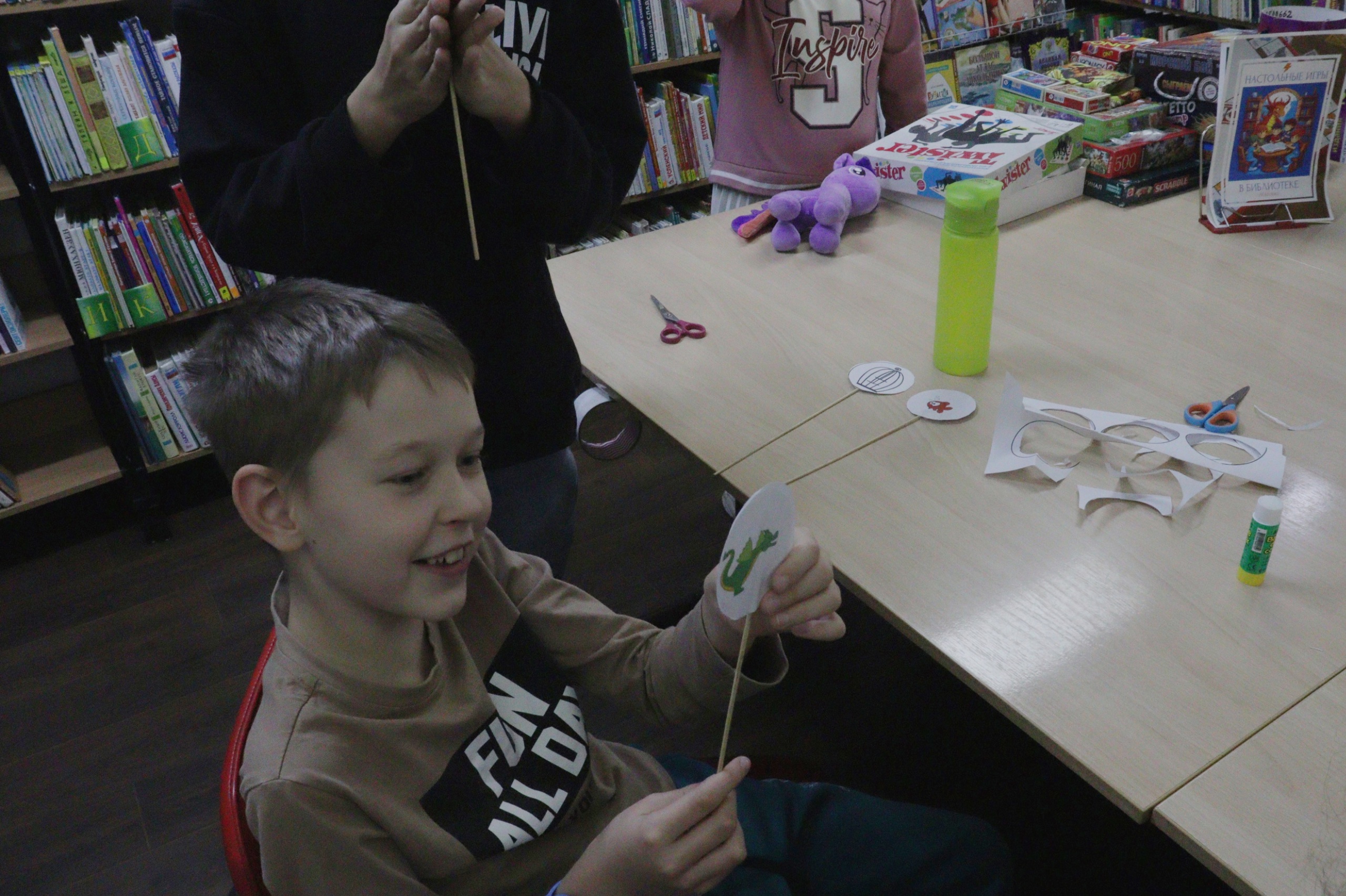 В библиотеке № 4 состоялся 26 октября час познания «Путешествие в мир анимации», посвящённый Международному дню анимации. В этот день библиотека превратилась в место волшебства и веселья, где каждый мог окунуться в мир любимых мультфильмов и узнать что-то новое. Мероприятие началось с рассказа библиотекаря о истории, видах и жанрах анимации. Затем ребята приступили к творческой части программы — изготовлению аппликации-тауматропа. Тауматроп — древнее оптическое устройство, создающее иллюзию движения. Дети сами собирали приспособление, а затем испытывали их в деле, наблюдая за волшебством анимации, которую они создают.