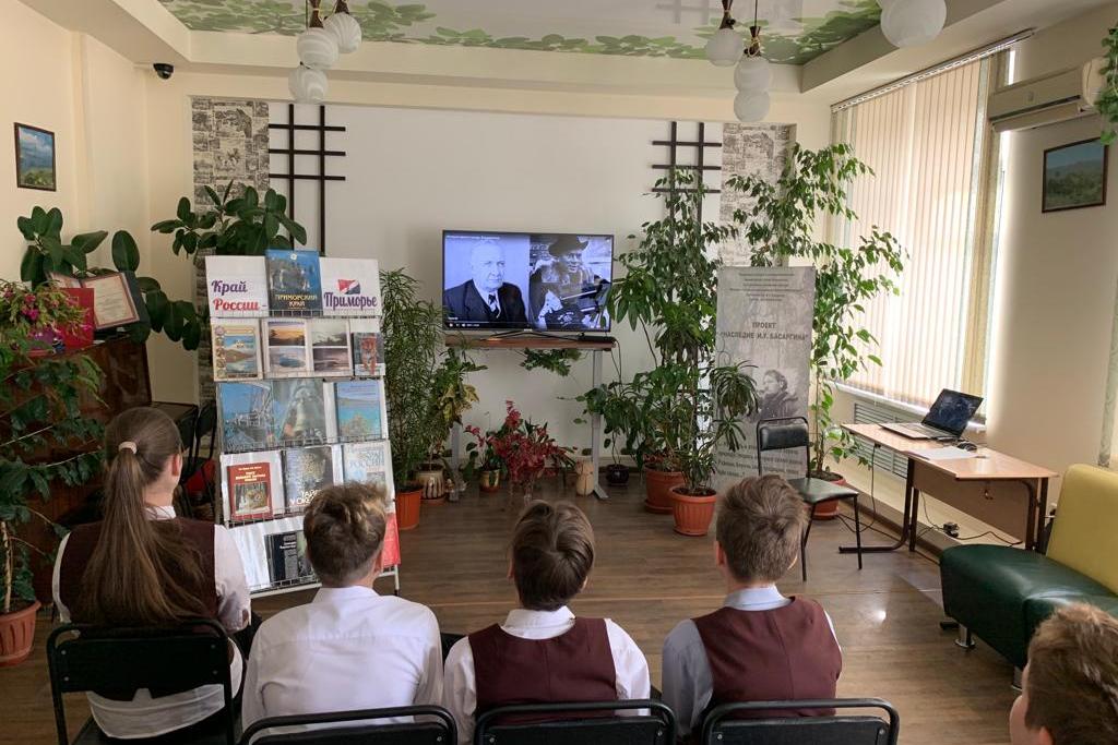 30 ноября учащиеся 7 «А» класса школы №57 совершили виртуальную экскурсию по памятным местам Приморья и узнали много интересных фактов об их истории в библиотеке им. И.У. Басаргина.