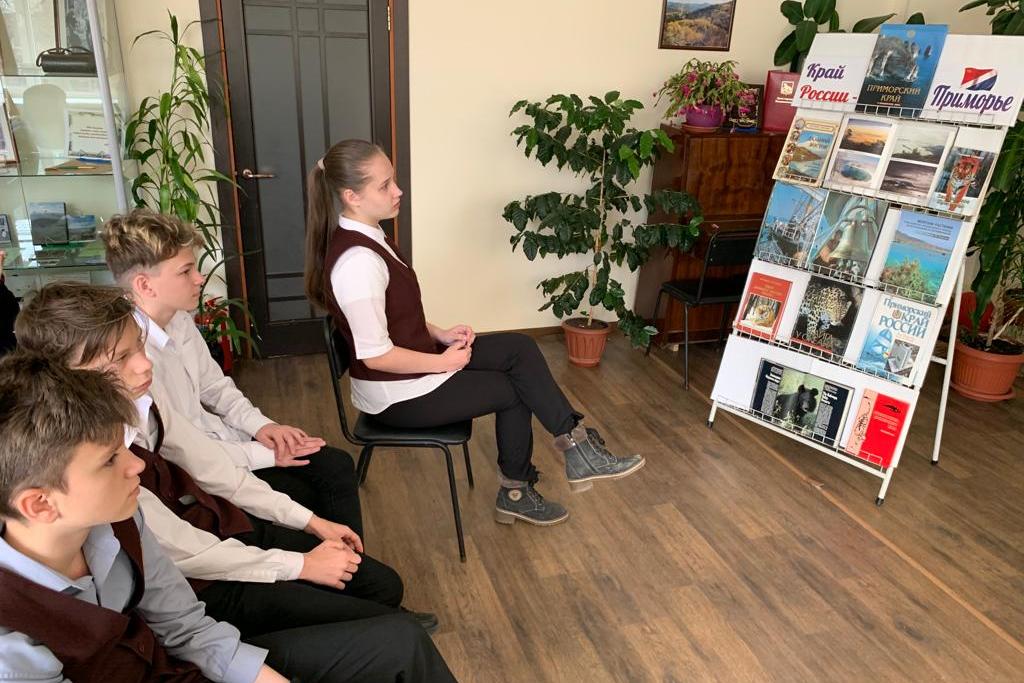 Специально подготовленная для встречи книжная выставка «Край России – Приморье» позволила ребятам познакомиться с наиболее востребованной литературой по освоению и развитию нашего родного Приморского края.