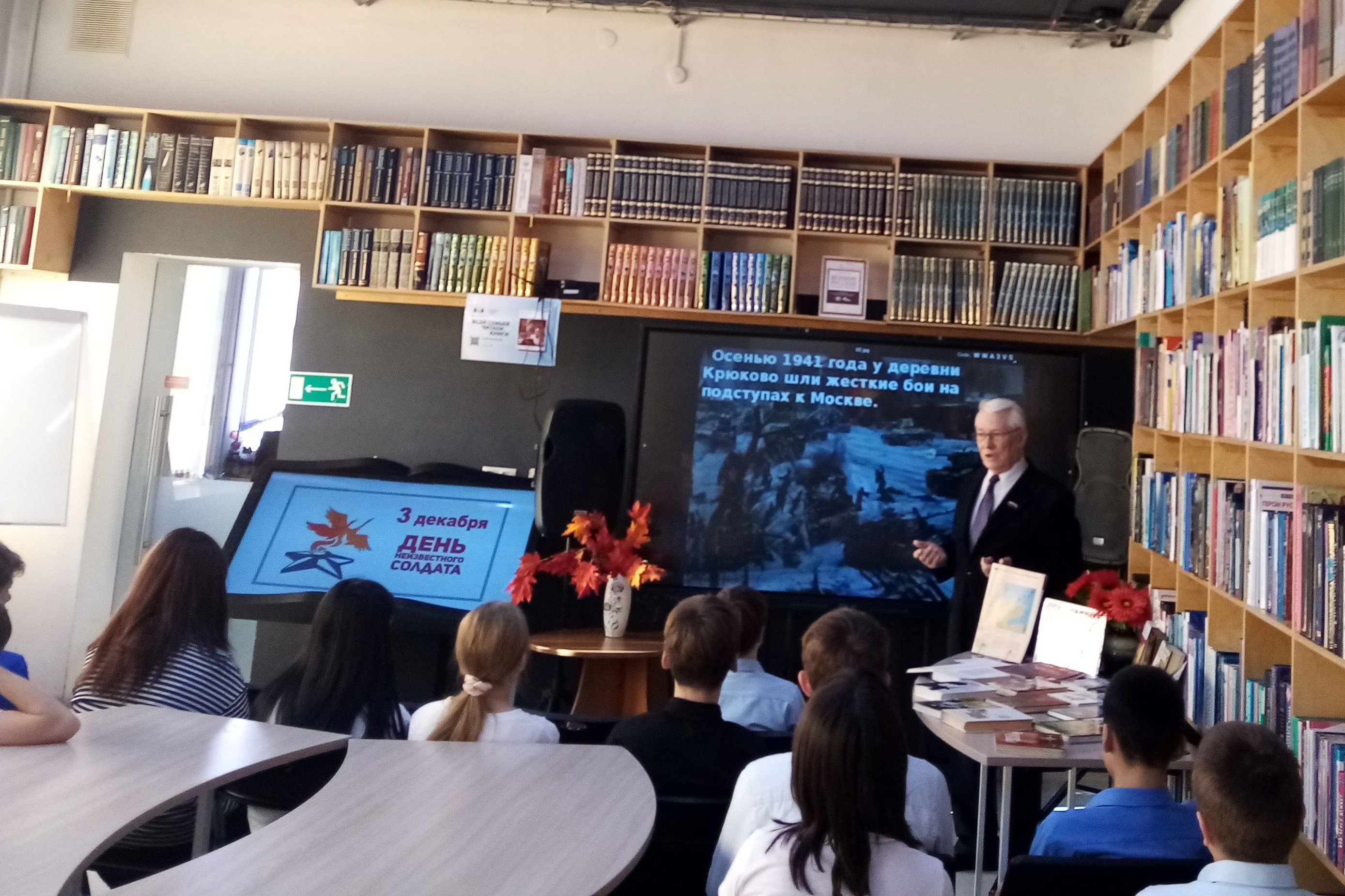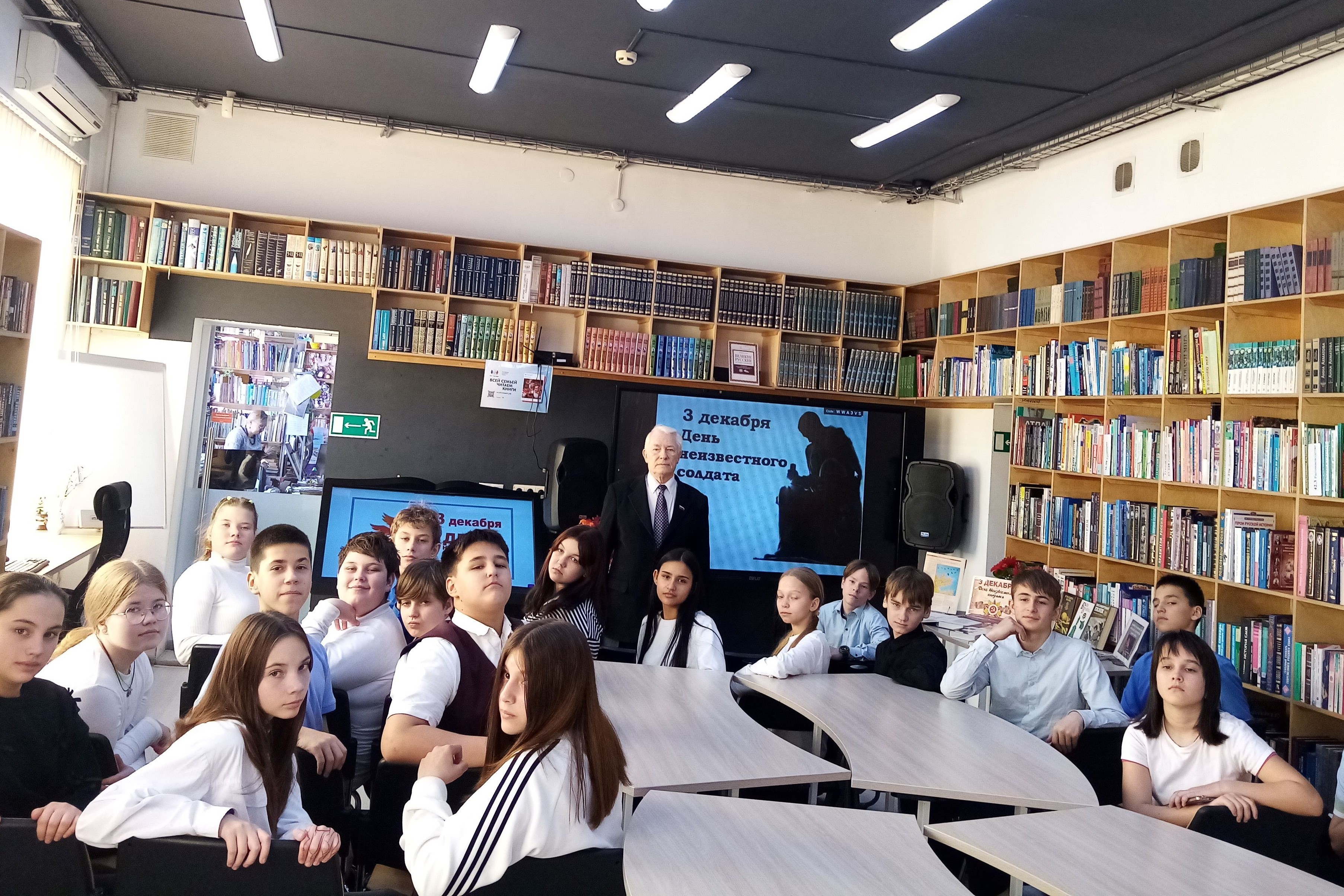 К этой памятной дате в библиотеке № 12 прошел час памяти «В народной памяти навечно, навсегда». На нём семиклассников Образовательного центра «Ступени» писатель-краевед Сидоров Николай Васильевич познакомил с историей появления памятной даты – День Неизвестного Солдата.