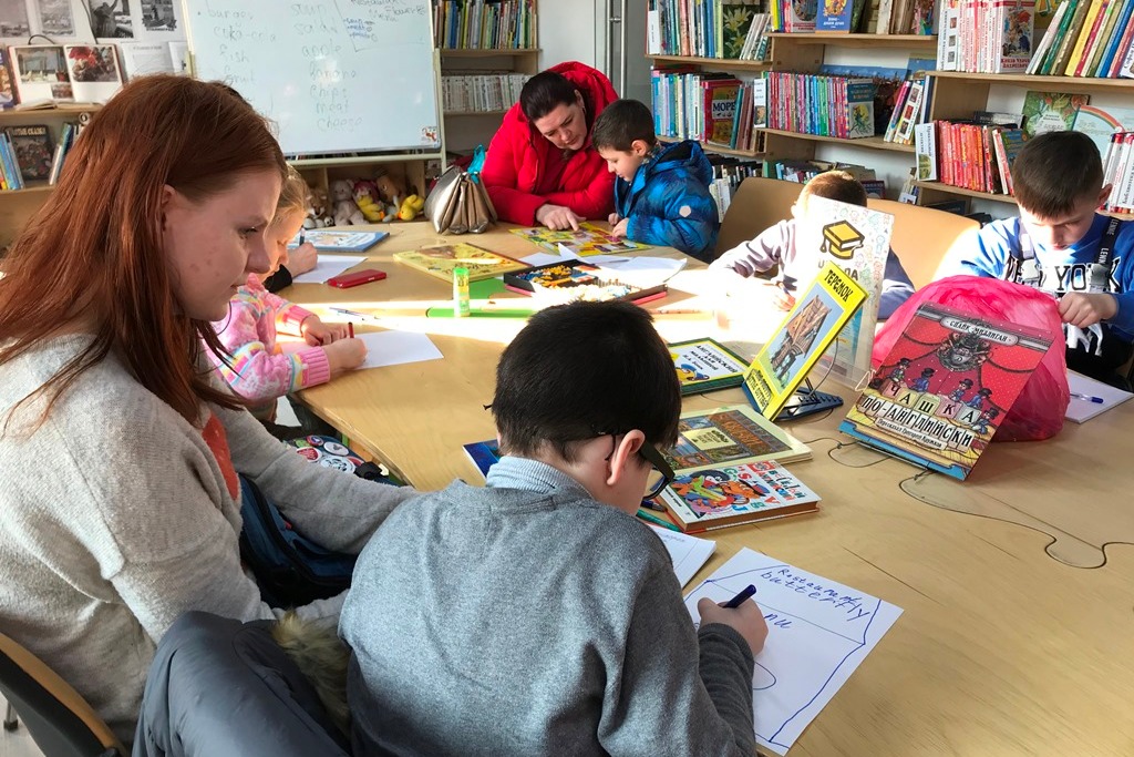 С новыми силами и с новыми знаниями студенты педагогического отрада «STEP» провели встречу с юными читателями центральной библиотеки им. А.П. Чехова. Очень «аппетитной» была встреча, так тема была выбрана «Еда не дома». По традиции, малыши познакомились друг с другом и посмотрели красочную презентацию со словами. Сыграли в «Камень-ножницы-бумага», повторили снова все слова для закрепления, и в завершении, нарисовали своё любимое блюдо. Рисунки получились «пальчики оближешь»!