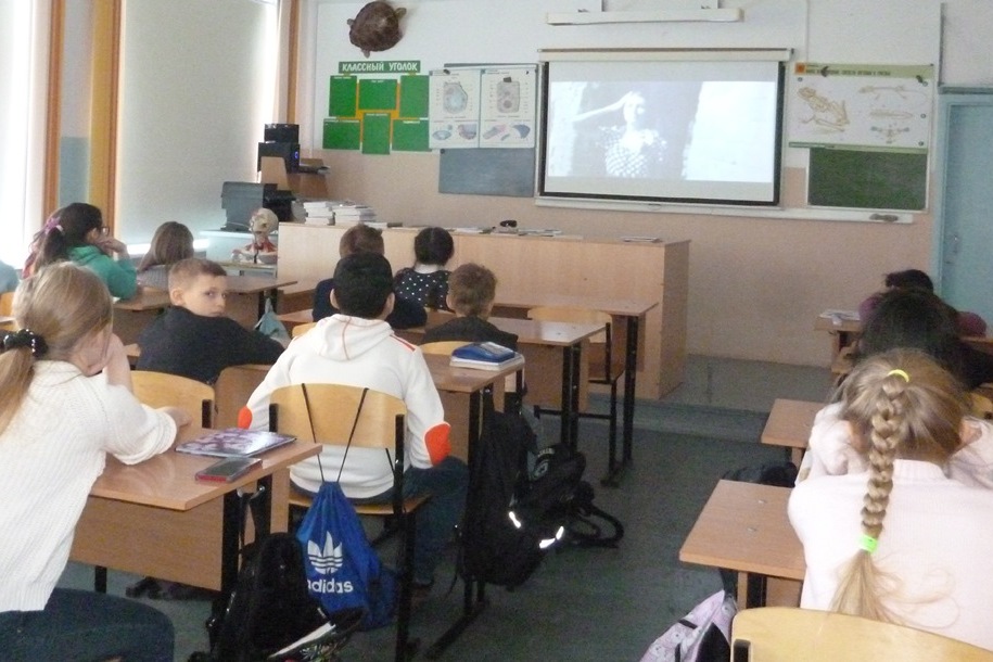 На экране была представлена информационная презентация, которая работала в дополнение к фильму. Все те же цифры: данные, года, соотношения сторон, население города до военных действий, после завершения, этапы сражения — были представлены таким образом, чтобы дети могли тезисно перенести в свои конспекты.
