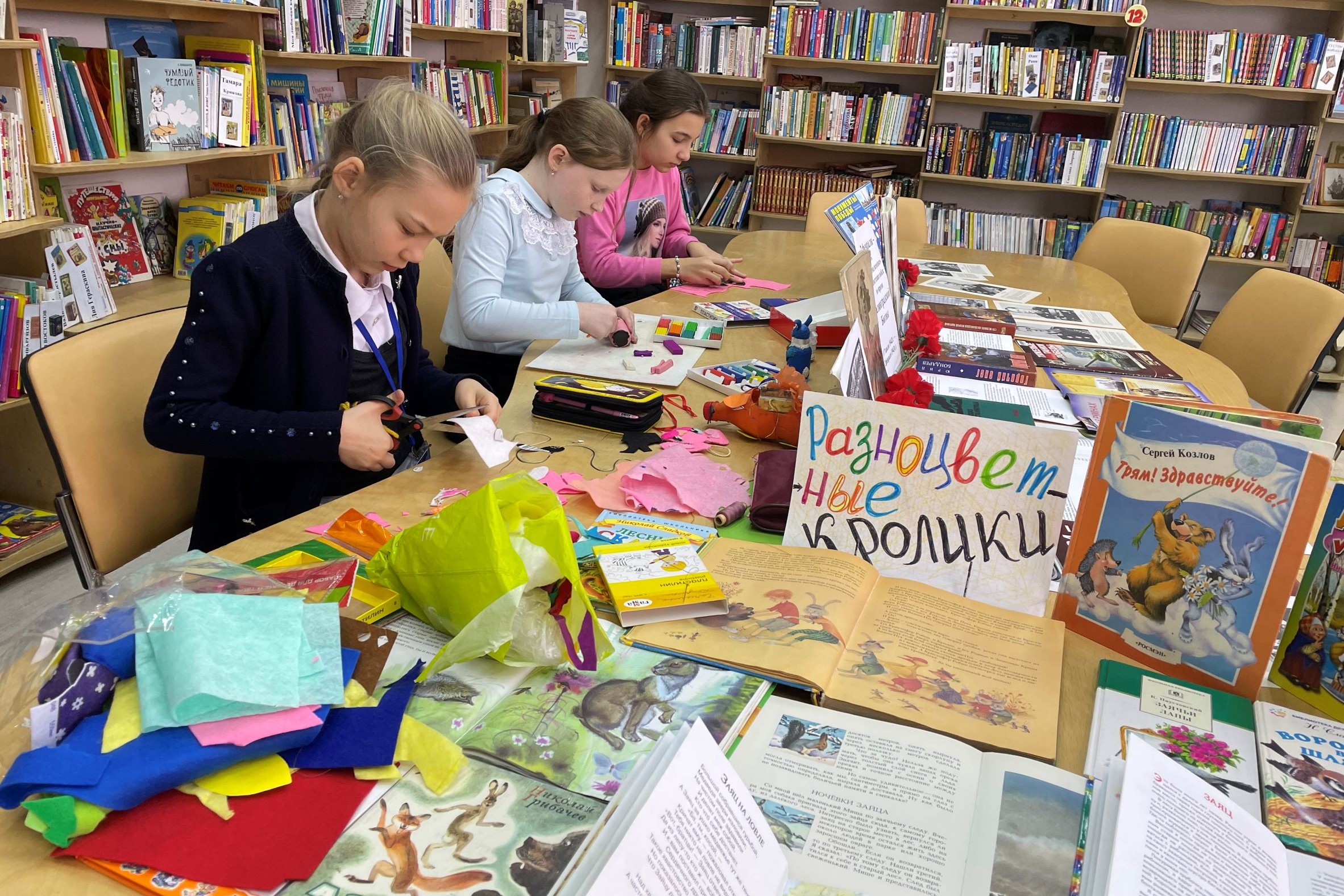 19 января в библиотеке мастерили разноцветных кроликов – делали фигурки из разных материалов и в разной технике, используя пластилин, фетр и бумагу, а заодно почитали сказки, рассказы и стихи про зайцев и кроликов, познакомились с журналом «Тошка и компания», послушали интересные рассказы из журнала о том, чем кролик отличается от зайчика, чем питается, как и где живет. А 26 января библиотекари работали по этой теме с «особенными» детьми в школе № 74, которые тоже увлеченно занимались творчеством, слушали книжные истории, задавали много вопросов.
