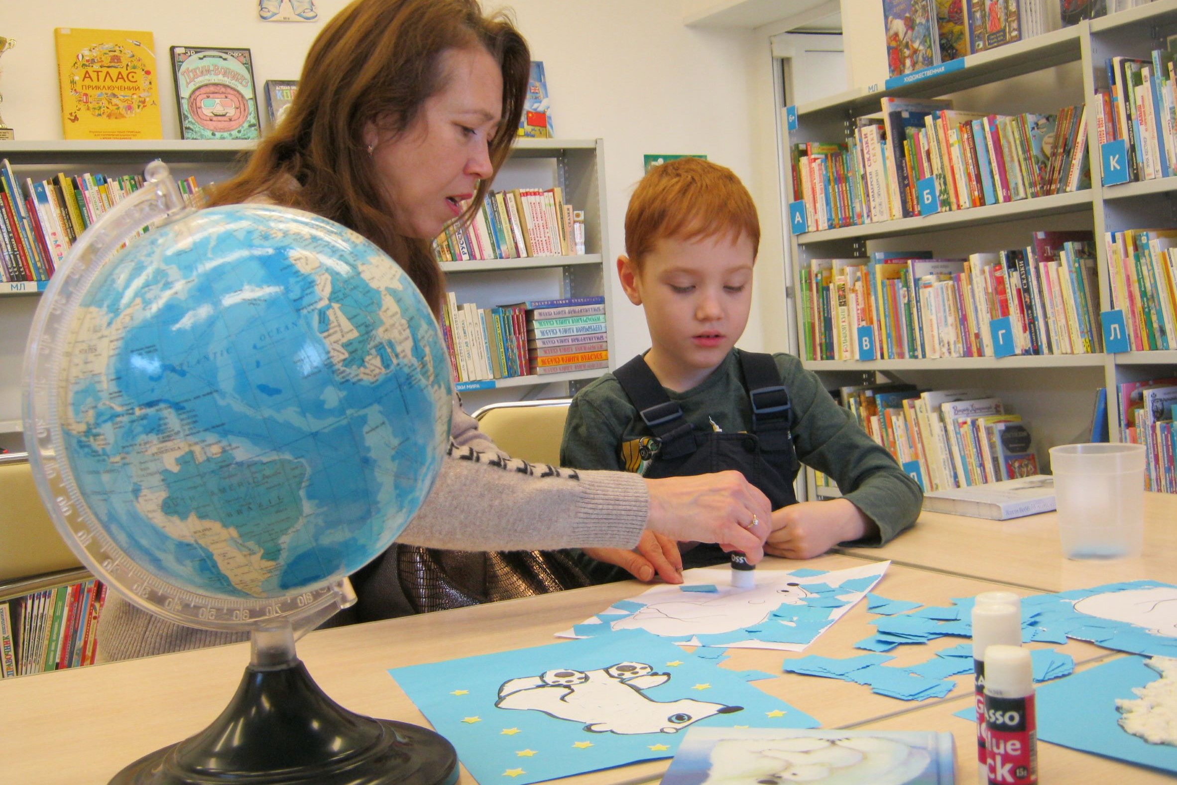 1 февраля в библиотеке № 8 состоялось сразу два творческих мероприятия для ребят из Центра развития творчества детства и юношества. Первыми пришли вместе с родителями на очередное занятие в библиотеке мальчики из «Лестницы», группы общеразвивающего направления для детей с ОВЗ. Мальчишки узнали, где живут белые медведи, покрутили глобус, посмотрели полюбившиеся книги из «Библиотеки Деда Мороза» и сделали с мамами несложную, но симпатичную поделку.