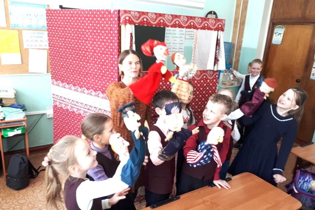 Школьникам очень понравилось представление, они смогли сами почувствовать себя актёрами кукольного театра, примерить перчаточных героев – Петрушку, Доктора, Цыгана, Чёрта и других.
