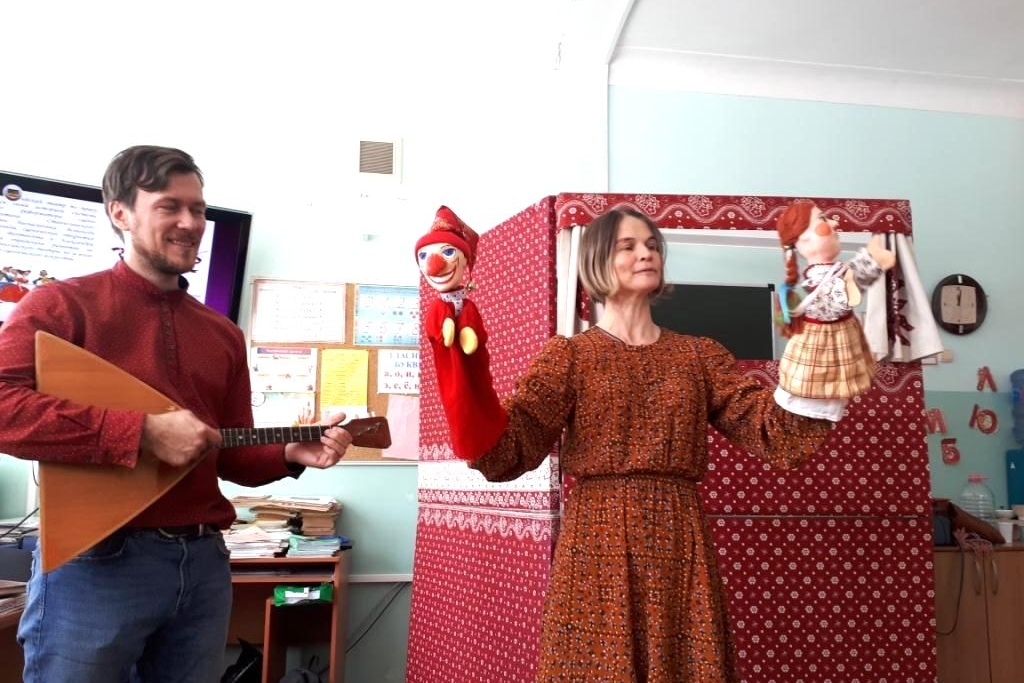 Во время представления он активно общался со школьниками, приглашая их стать участниками театральных историй, поиграть в оркестре, разгадать народные загадки и просто посмеяться.