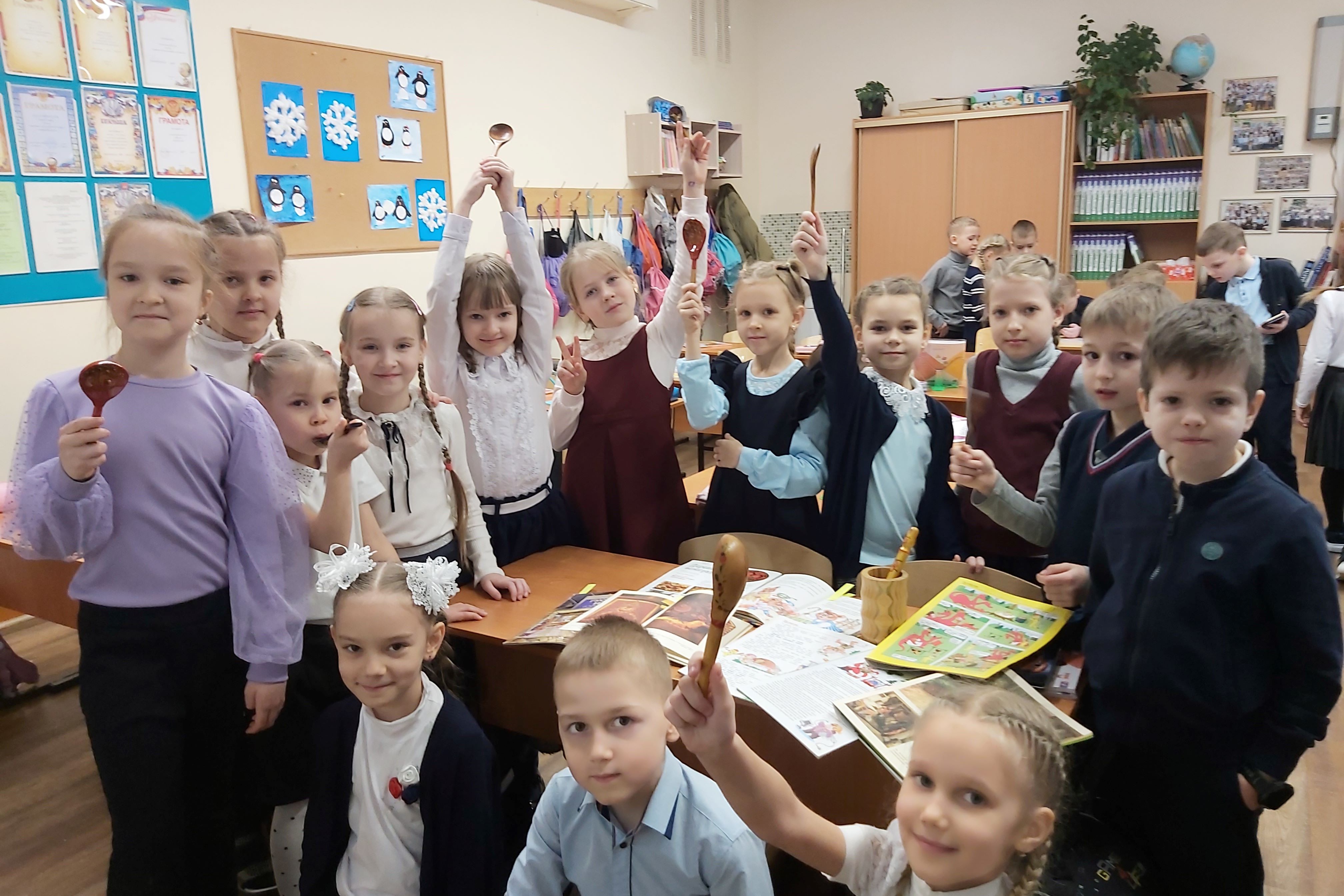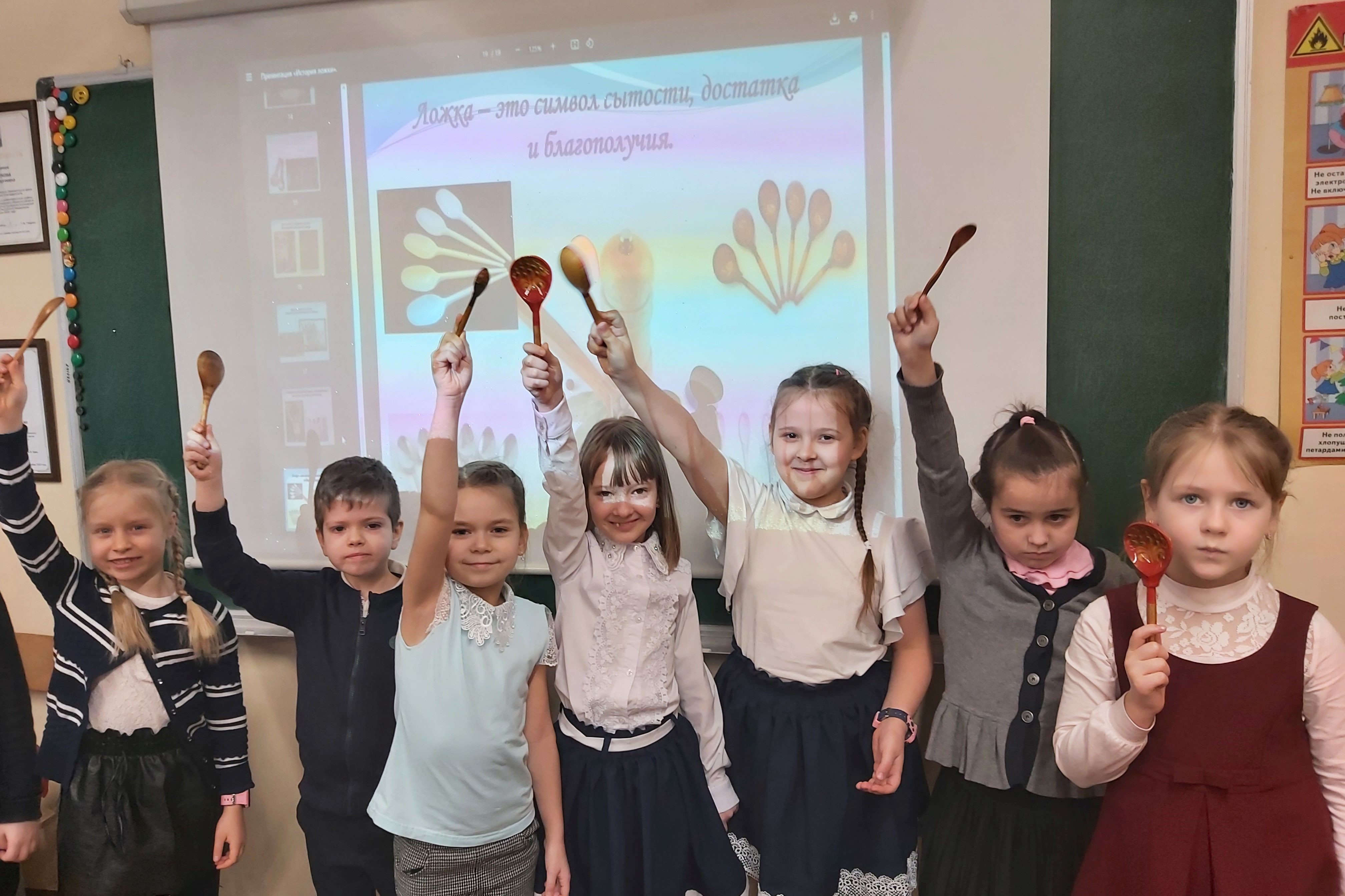 Деревянные ложки чаще всего делаются из липы, березы, ольхи, осины, рябины, яблони. Связано это с тем, что дерево легче поддается обработке и из него проще вырезать нужную форму. Мастера, которые изготавливали деревянные ложки – «ложкари». У них свой особый инструмент. Деревянные изделия не только красивы – это экологически чистый материал. Недаром на Руси испокон веку ели из деревянной посуды деревянными столовыми приборами и были здоровы до самой старости. Познакомившись с историей деревянной ложки, ребята с удовольствием поиграли в игру «Найди ложку в сказке». А еще ученики узнали, что деревянные ложки можно использовать, как музыкальный инструмент.