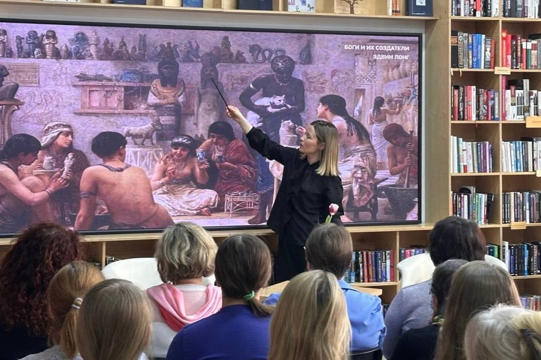 Участники лекции узнали о том, как менялось место и роль кошек в разные периоды человеческой истории, об отражении этих изменений в мировой художественной культуре и верованиях людей.