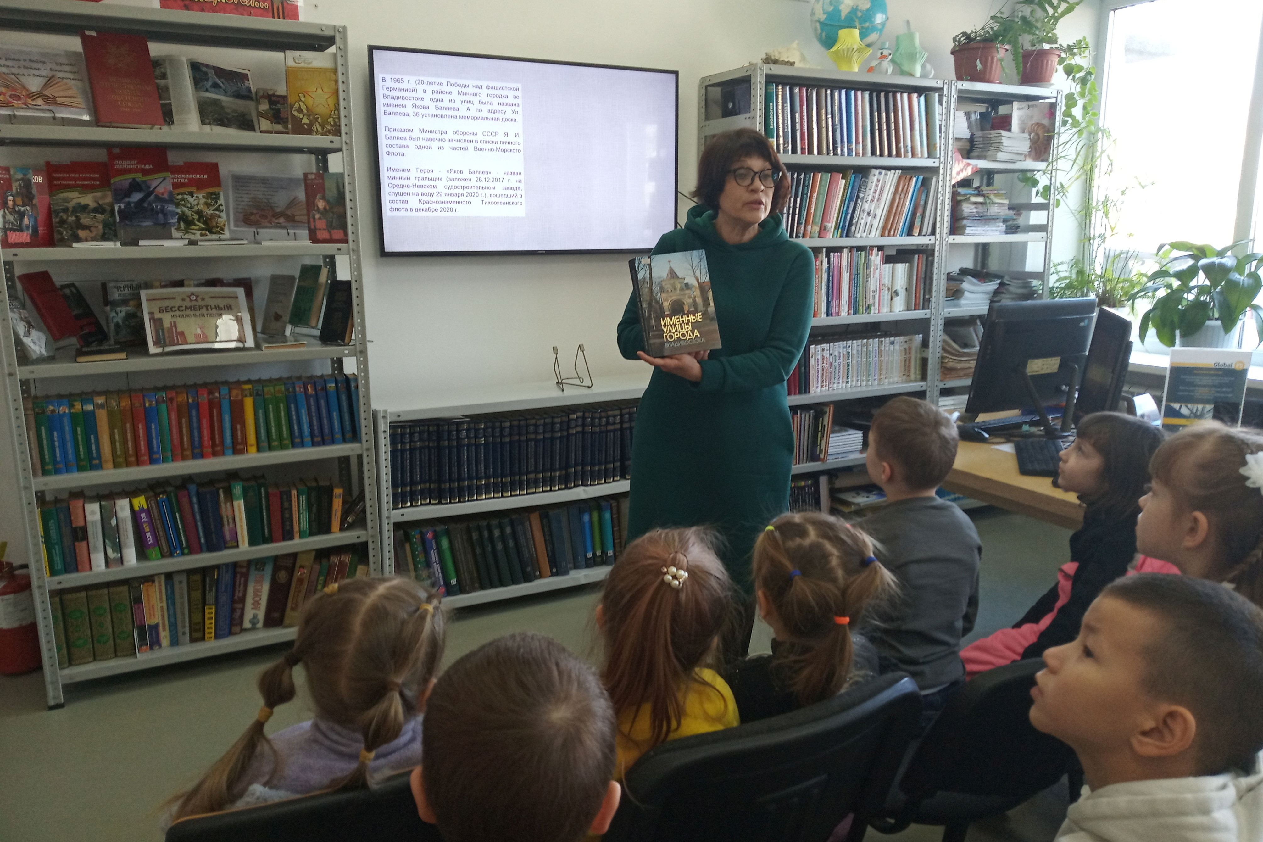 Библиотека №16 провела час памяти «Улицы героев. Яков Баляев» в рамках проекта «Герои Второй мировой на карте г. Владивостока». Участниками мероприятия стали воспитанники ДОУ №182.
