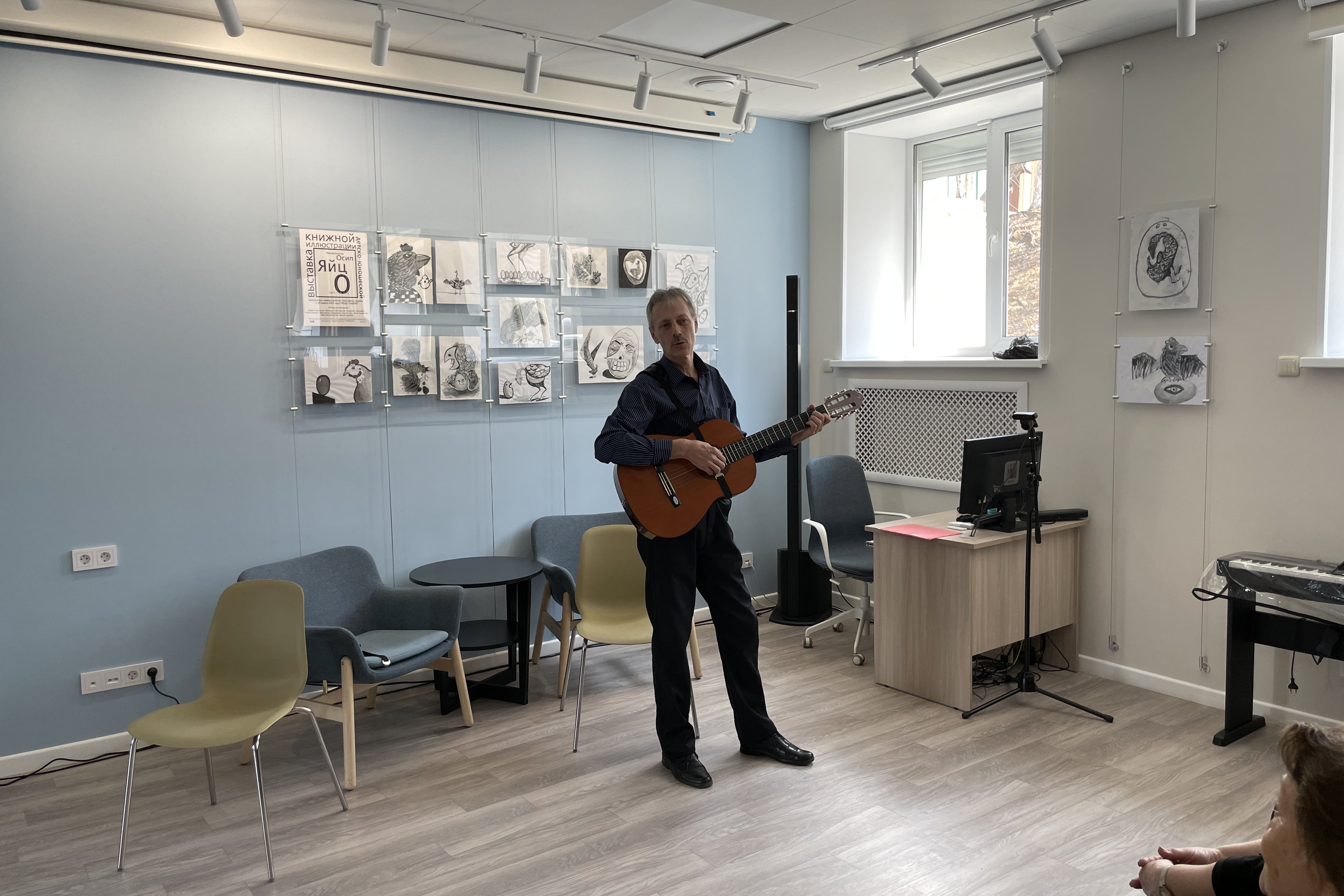 В этот раз были приглашены участники известного во Владивостоке трио «БардАльянс» Влада Лазо и Вячеслав Титков с программой «Музыка весны». Эти прекрасные гитаристы — исполнители бардовских песен, как известных широкому кругу, так и не столь популярных. Влада уже не раз принимала участие в библиотечных мероприятиях, и многие читатели специально пришли, чтобы услышать ее исполнение. В дуэте с Вячеславом Титковым были исполнены душевные, жизнеутверждающие, сатирические, весенние песни из репертуара Веры Матвеевой, Дмитрия Быковского, Сергея Трофимова, Булата Окуджавы. Эти песни как доверительная беседа, искренние, волнующие. Поющая поэзия, авторская песня — это монолог исполнителя на близкие слушателю темы. А слушатели, среди которых было много пожилых людей, уносились в свою юность, вспоминая советские годы, послевоенное детство, романтические встречи.