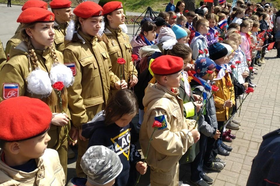 Сотрудники библиотеки № 4 вместе с учащимися 4 «Б» класса МБОУ «СОШ №22» пришли с флагами и цветами, чтобы отдать дань памяти погибшим героям.
