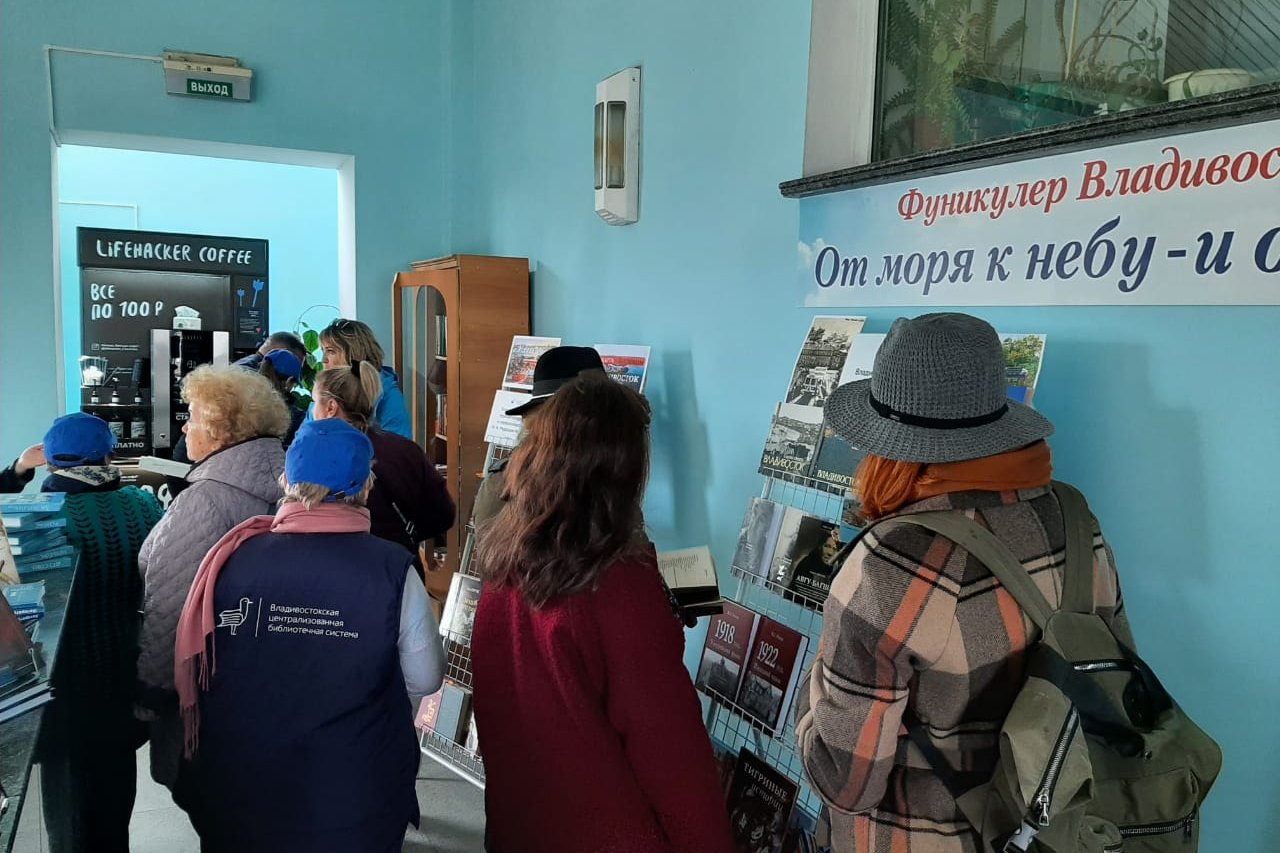 На верхней площадке на один день обосновалась выставка книг (в том числе детских) о Приморском крае и его столице от разных авторов, как местных, так и иногородних. Представила экспозицию Владивостокская централизованная библиотечная система.