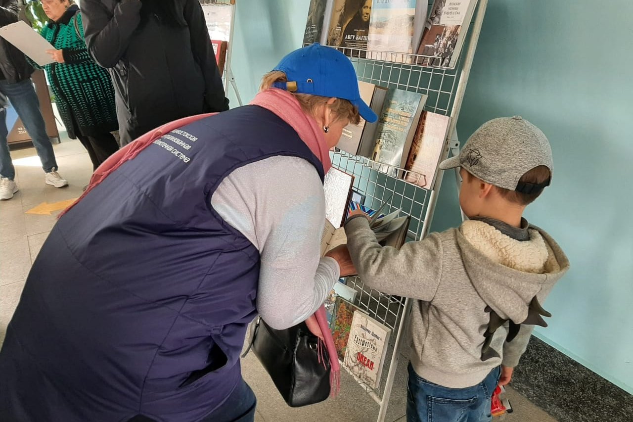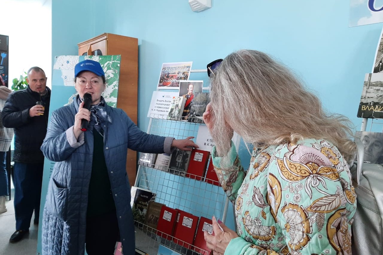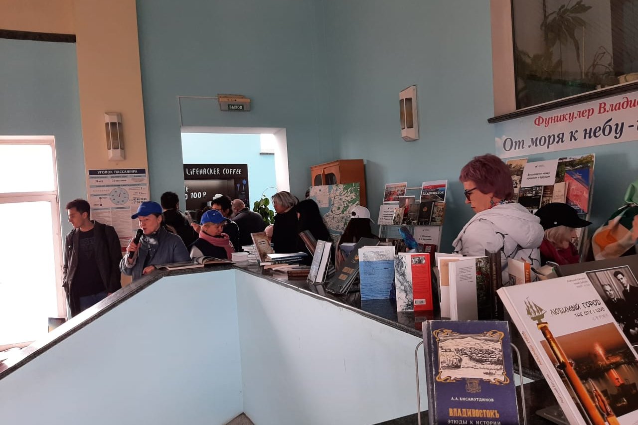 На верхней площадке на один день обосновалась выставка книг (в том числе детских) о Приморском крае и его столице от разных авторов, как местных, так и иногородних. Представила экспозицию Владивостокская централизованная библиотечная система.