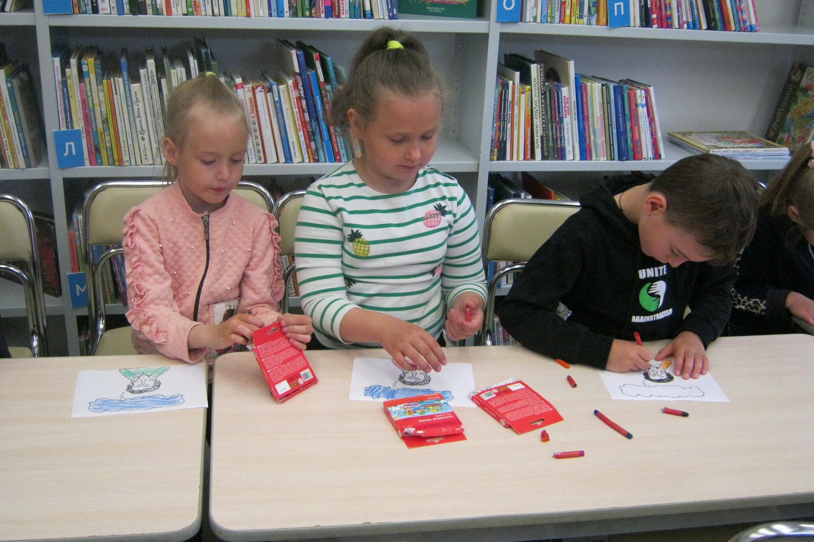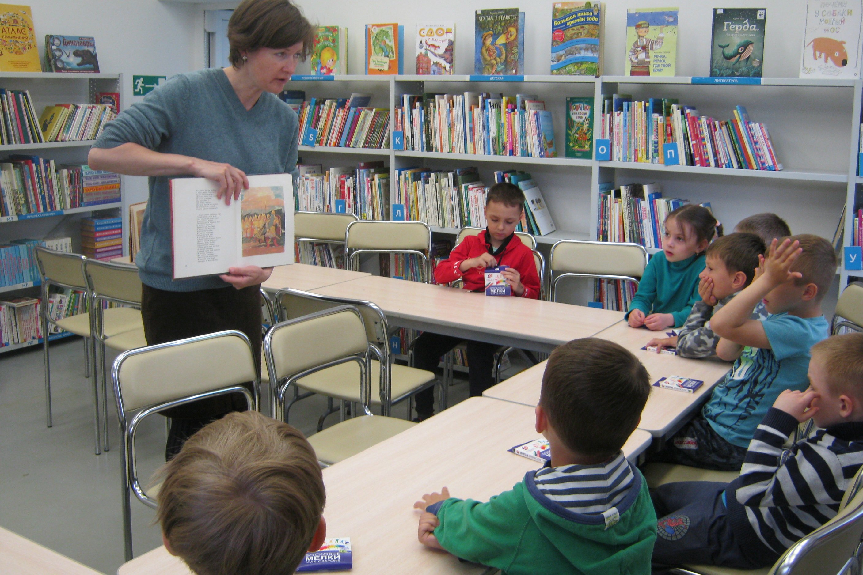 3 июня библиотеку №8 посетили самые маленькие друзья библиотеки — воспитанники детского сада №80. Малыши знакомились с миром сказок главного русского гения. К сожалению, выдана на руки читателю оказалась книга с самыми знаменитыми иллюстрациями к сказкам Пушкина, конечно, речь идет о рисунках Татьяны Мавриной. Но малыши посмотрели, как выглядели цари у Ивана Билибина и Олега Зотова, как иногда художник рисует в книге персонажей из другой сказки автора и это не по ошибке, не от незнания, а как бы от того, что всех своих героев, всех этих сказочных существ сразу Александр Пушкин уже поселил в своем лукоморье. Раскрашивали детсадовцы рисунки Алексея Никитина к комиксам о Пушкине из «Хармсиниады».