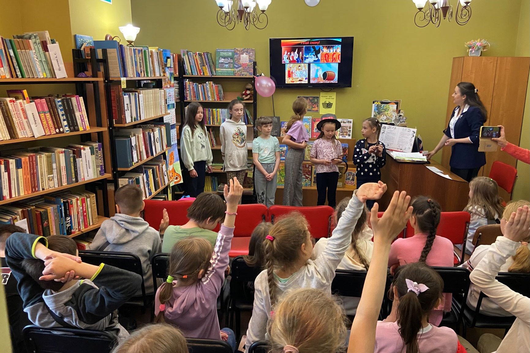 Школьники посмотрели презентацию «Пушкин» и мультфильм «Сказка о мертвой царевне и семи богатырях», поучаствовали в викторине. Дети отлично знают сказки, ответили на все вопросы викторины и выполнили игровые задания. Очень порадовала любовь наших юных читателей к сказкам А.С. Пушкина. Ребята отвечали на самые заковыристые вопросы, читали наизусть стихи, все вместе хором прочитали «У Лукоморья…», активно выполняли задания, с интересом рассматривали книги А.С. Пушкина с выставки.