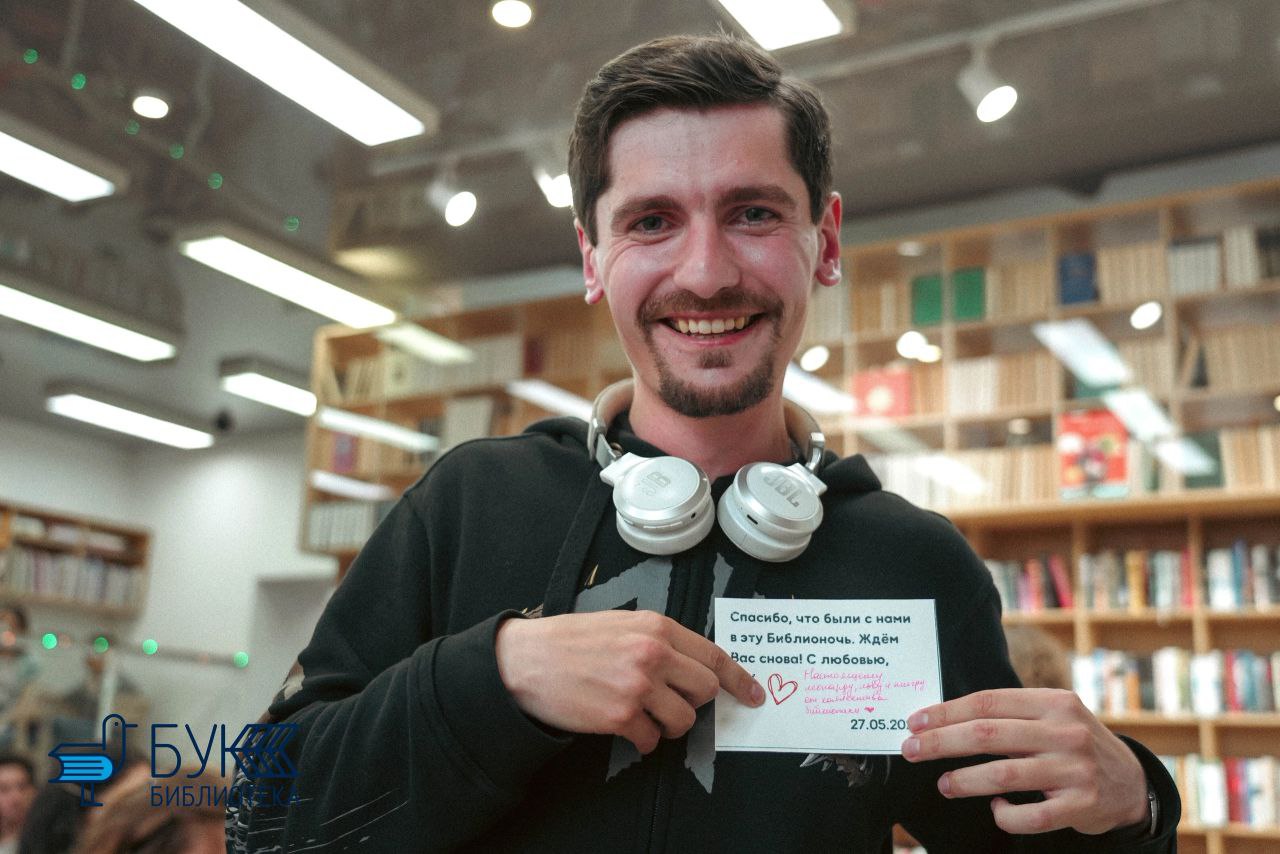 Завершила Библионочь ночная программа «Ночной дозор»: посетители занимались творчеством, обращались за гаданиями на литературном таро и на книгах. В это время DJ Meydich запустил сет, состоящий из миксованных фрагментов аудиокниг.