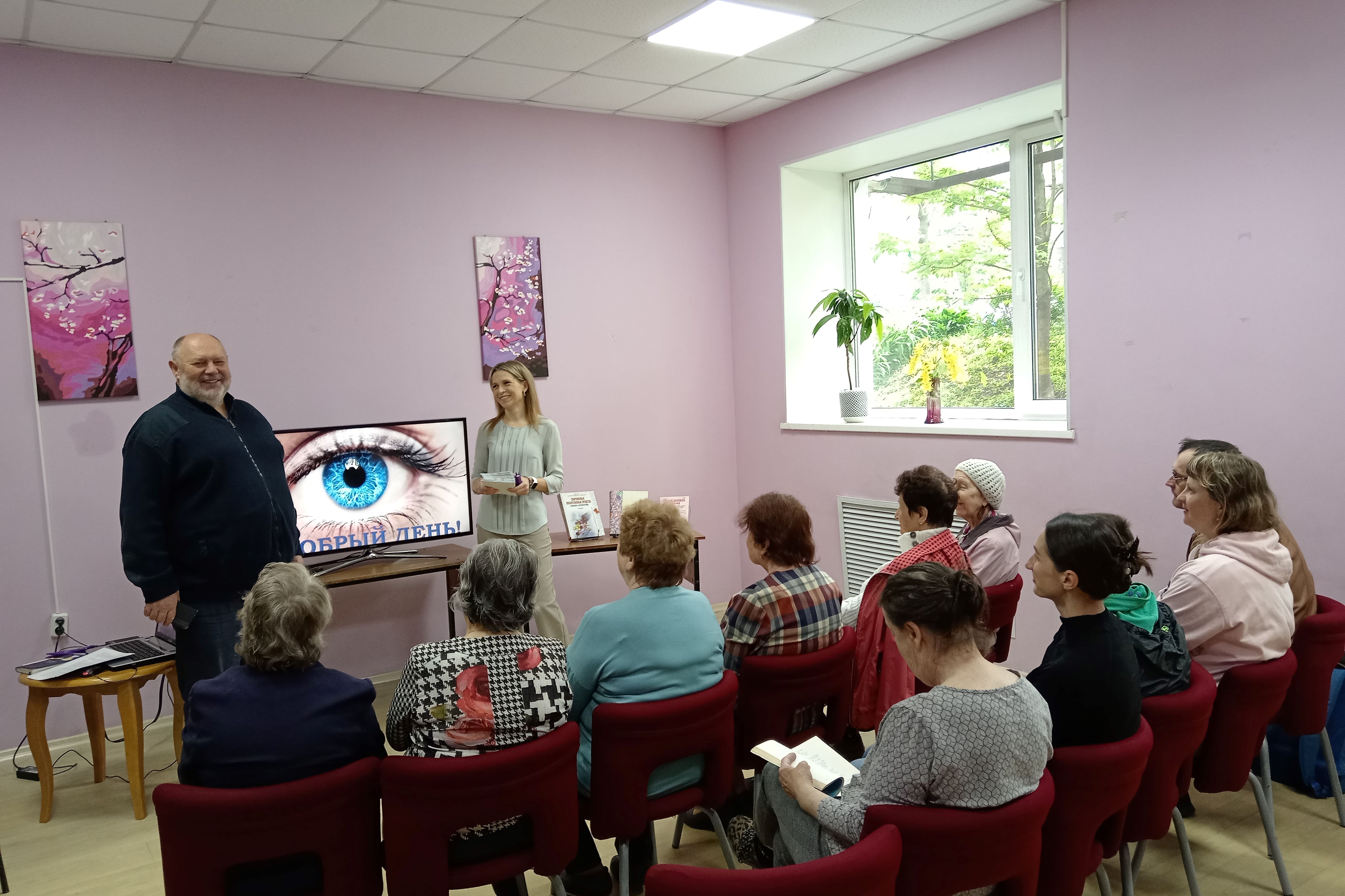 Лекцию посетили представители Общества инвалидов Советского района и читатели библиотеки. Сейчас, когда мы постоянно работаем на компьютерах и ноутбуках, читаем новости в телефонах или просто смотрим кино на планшете, проблема охраны зрения становится особенно актуальной. Глазные болезни появляются ещё в детстве и сопровождают в зрелом возрасте. В веке гаджетов нужно постоянно проверять остроту зрения и следить за здоровьем глаз под руководством врача-офтальмолога. Об этих и многих других проблемах рассказал врач на встрече. Заинтересованные слушатели смогли получить личную консультацию у специалиста. В поликлинике не всегда удается подробно поговорить с врачом, но сегодня у всех присутствующих была уникальная возможность пообщаться с окулистом напрямую. Кроме того, врач – офтальмолог дал рекомендации о том, как заботиться о здоровье глаз в зрелом возрасте. Встречи с врачами уже становятся традицией для библиотеки № 13. По окончанию мероприятия слушатели поблагодарили организаторов и лектора.