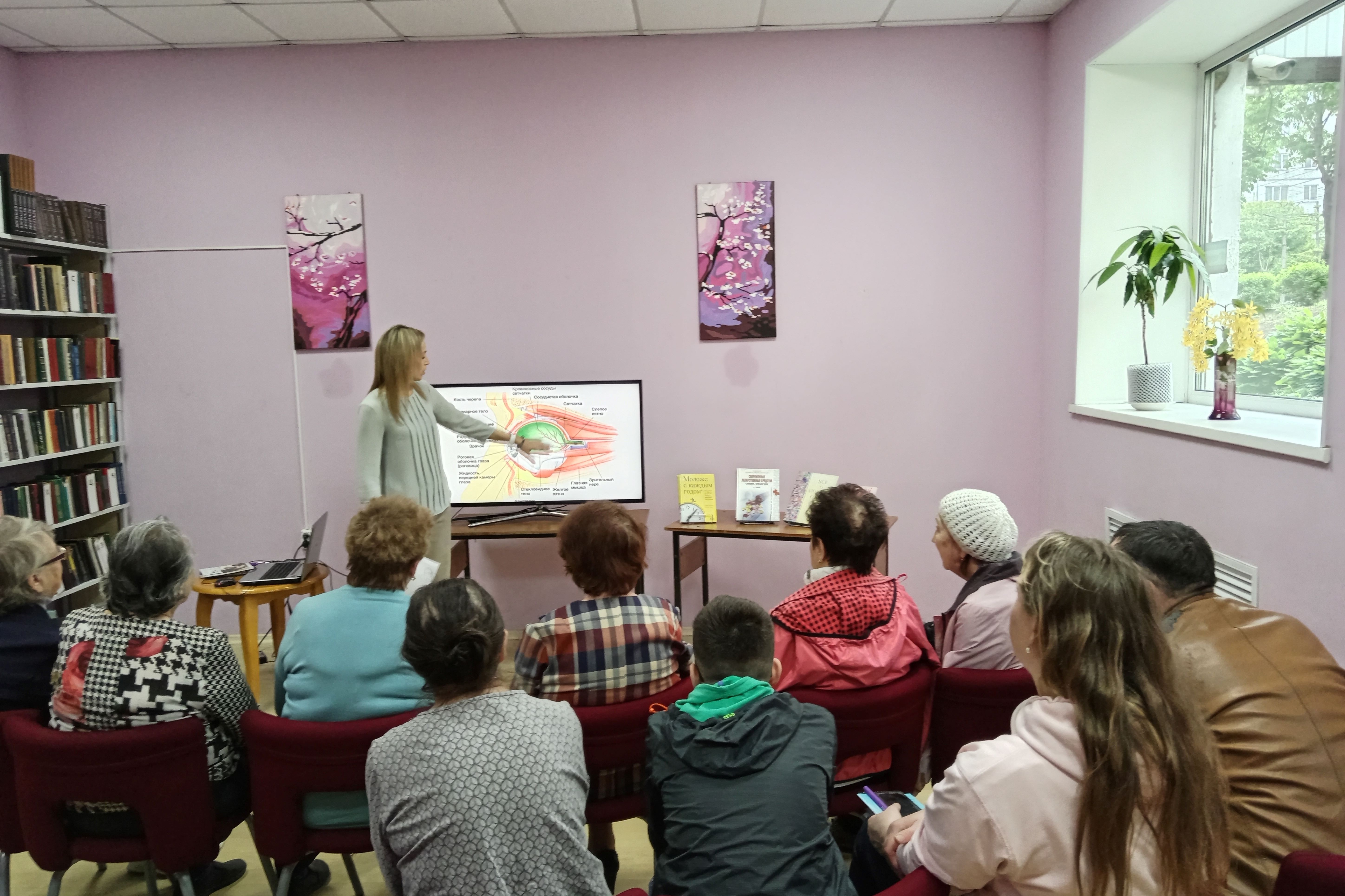 «Глаза – не только зеркало души, но и наше окно в мир. Глаза – самый уникальный орган человека», — с этих слов началась встреча с врачом-офтальмологом, специалистом по контактной коррекции зрения, Гренковой Юлией Игоревной в библиотеке № 13.