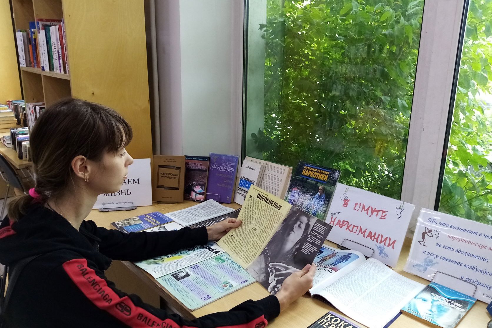 Накануне Международного дня борьбы с наркоманией и наркобизнесом библиотека №12 провела обзор выставки «В омуте наркомании», целью которого была пропаганда здорового образа жизни, где нет места вредным привычкам.