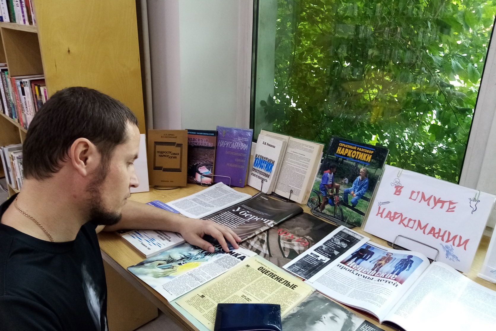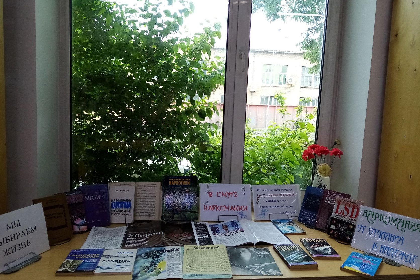 Накануне Международного дня борьбы с наркоманией и наркобизнесом библиотека №12 провела обзор выставки «В омуте наркомании», целью которого была пропаганда здорового образа жизни, где нет места вредным привычкам.