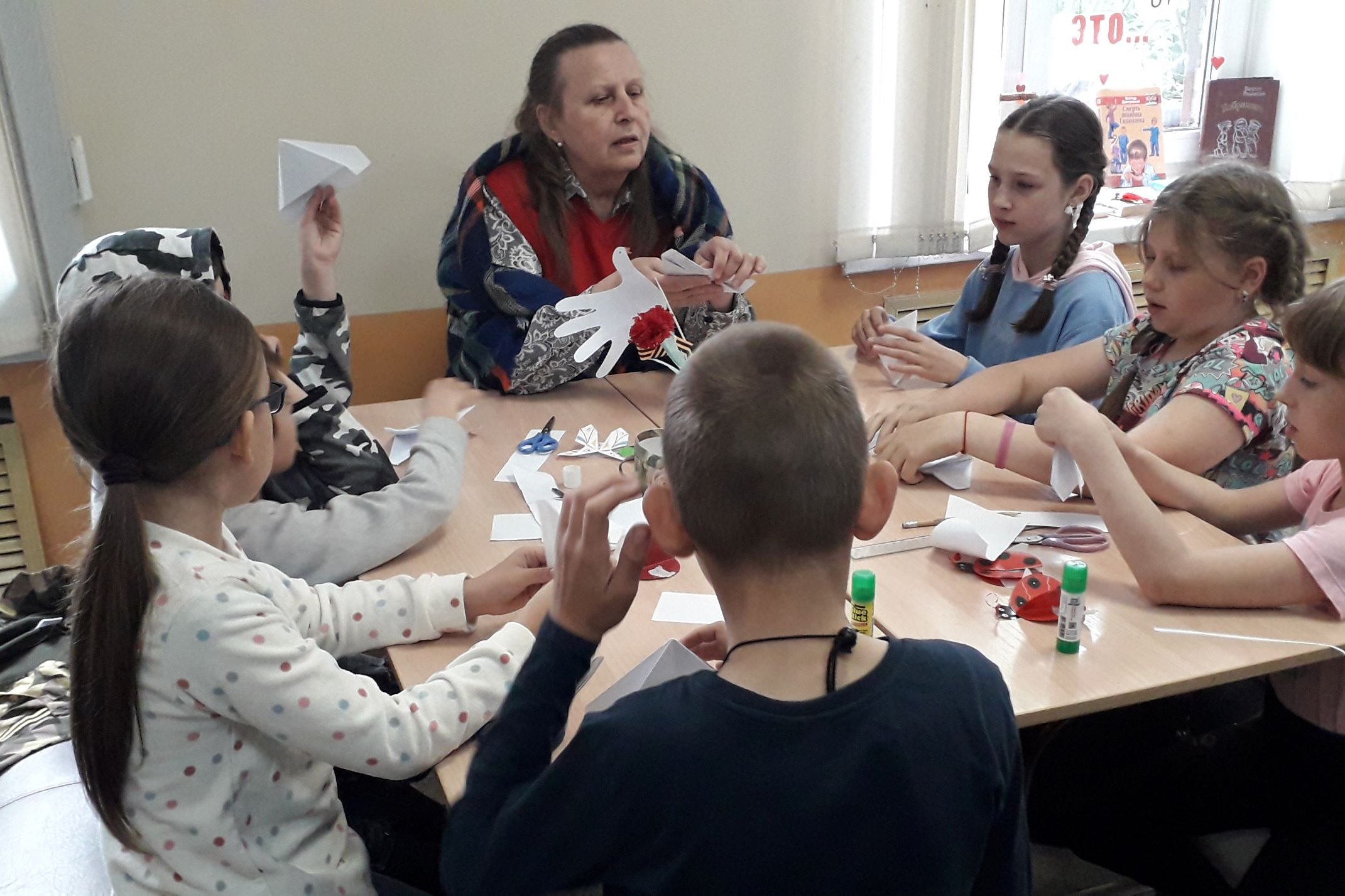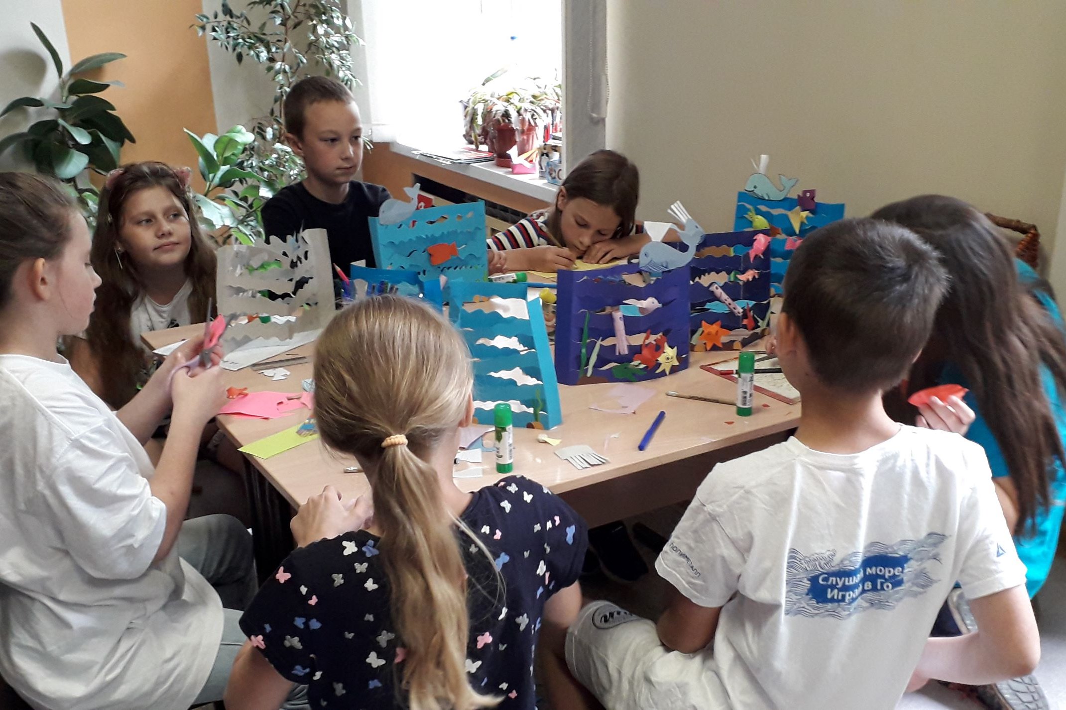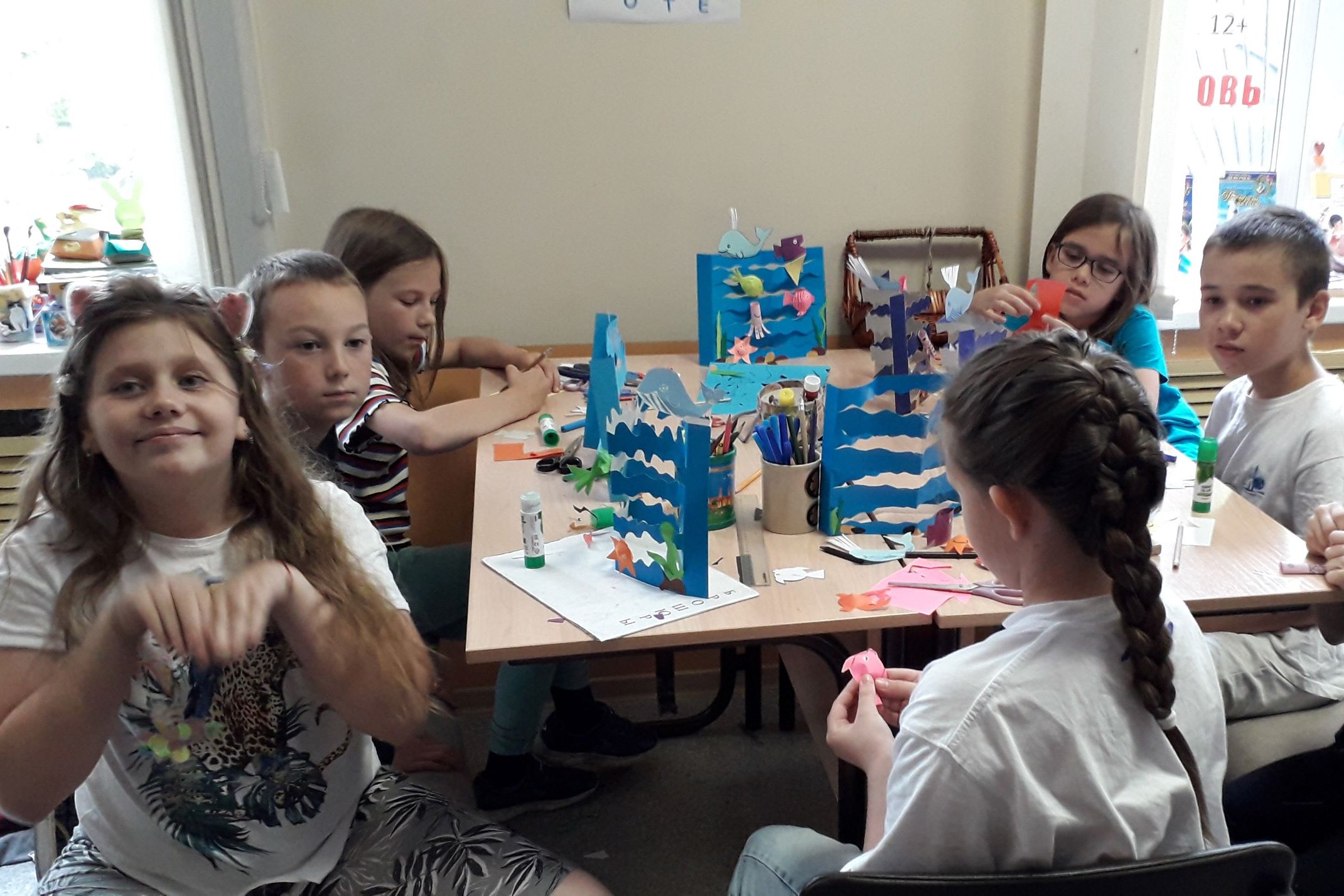 В самом разгаре летний отдых детей, а это значит, что у ребят много свободного времени, которое можно провести в хорошей компании и посвятить интересным занятиям. Творческая мастерская «Чудеса своими руками» продолжает работу в библиотеке им. Н.Н. Муравьева-Амурского и предлагает читателям-детям принять участие в изготовлении разнообразных поделок из самых доступных материалов – бумага разных видов, мелкие предметы для декора. Тематика для поделок тоже различная – это и забавные фигурки насекомых, и стилизованные под гжельскую роспись изделия, и бумажные куклы в стиле русских народных промыслов, и объемная открытка на морскую тему к предстоящему дню рождения Владивостока. Кроме, собственно творческого процесса, ребята знакомятся с интересной информацией и книгами. Так, прежде чем приступит к работе над тарелочками в стиле гжельской росписи, ребята познакомились с книжно-предметной выставкой «Промысел – это…», где представлены изделия русских народных промыслов и прослушали рассказ о традициях того или иного производства.