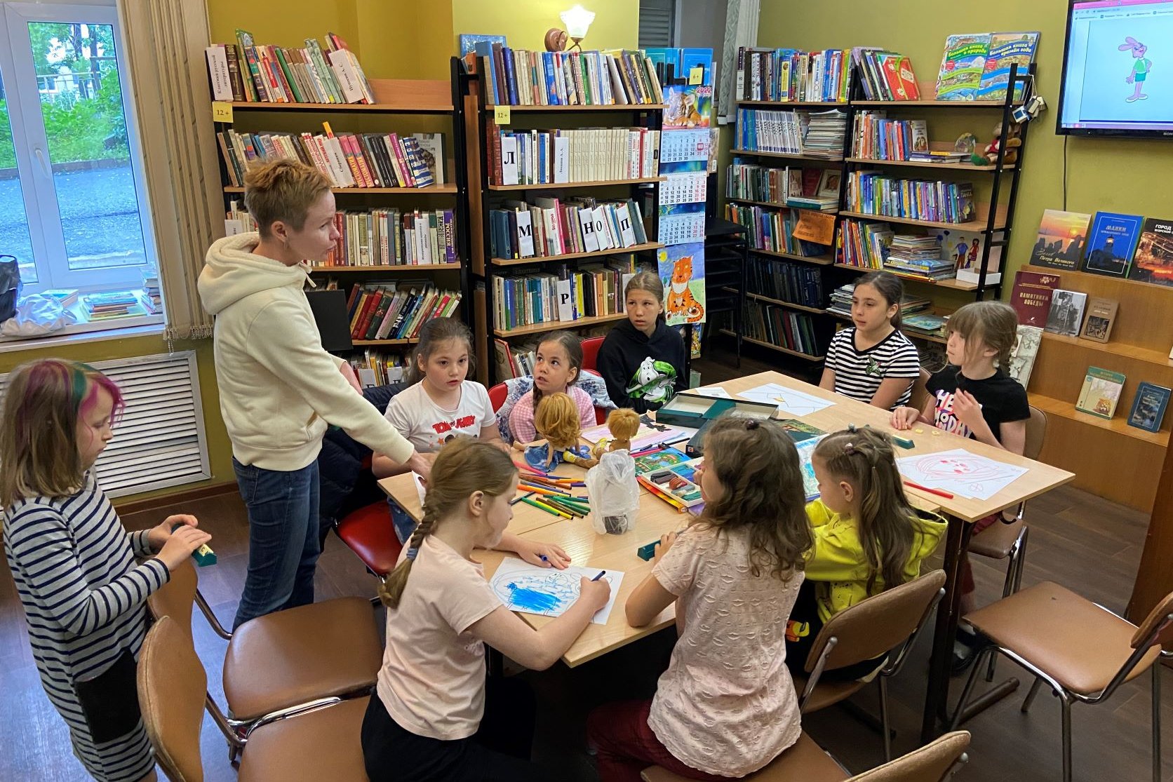 Дети из клуба имени С. Г. Борисенко, пришедшие в библиотеку № 9, стали участниками игровой творческой программы «Хоровод весёлых книжек для девчонок и мальчишек».