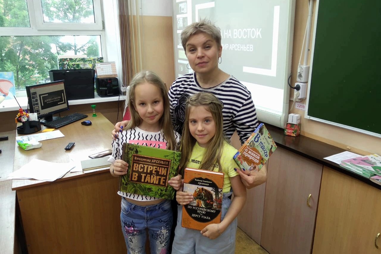 В рамках сотрудничества и организацией летних образовательных мероприятий, к 150 годовщине со дня рождения В.К. Арсеньева сотрудники библиотеки им. А.С. Пушкина (БУК) организовали и провели для детей пришкольного лагеря школы №9 в конце июня час краеведения «Дорога на Восток».