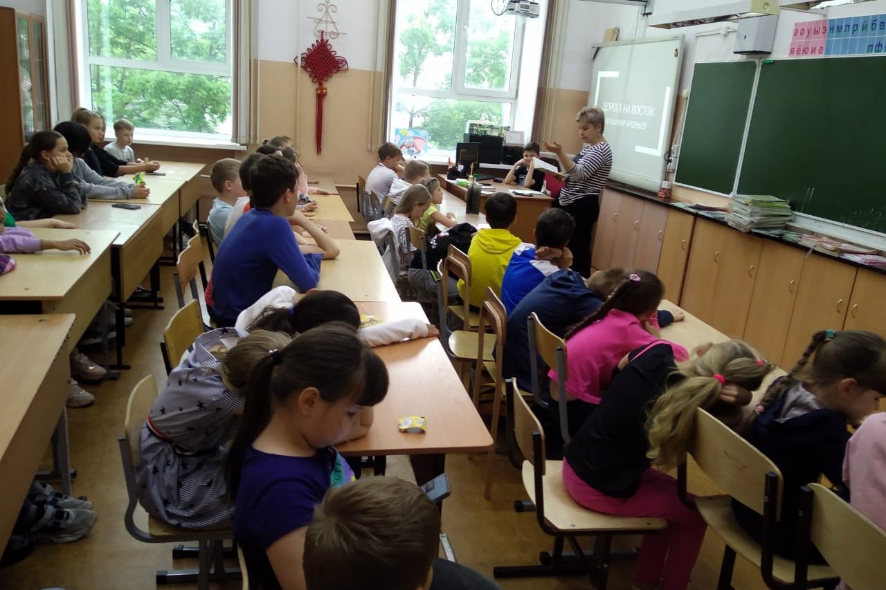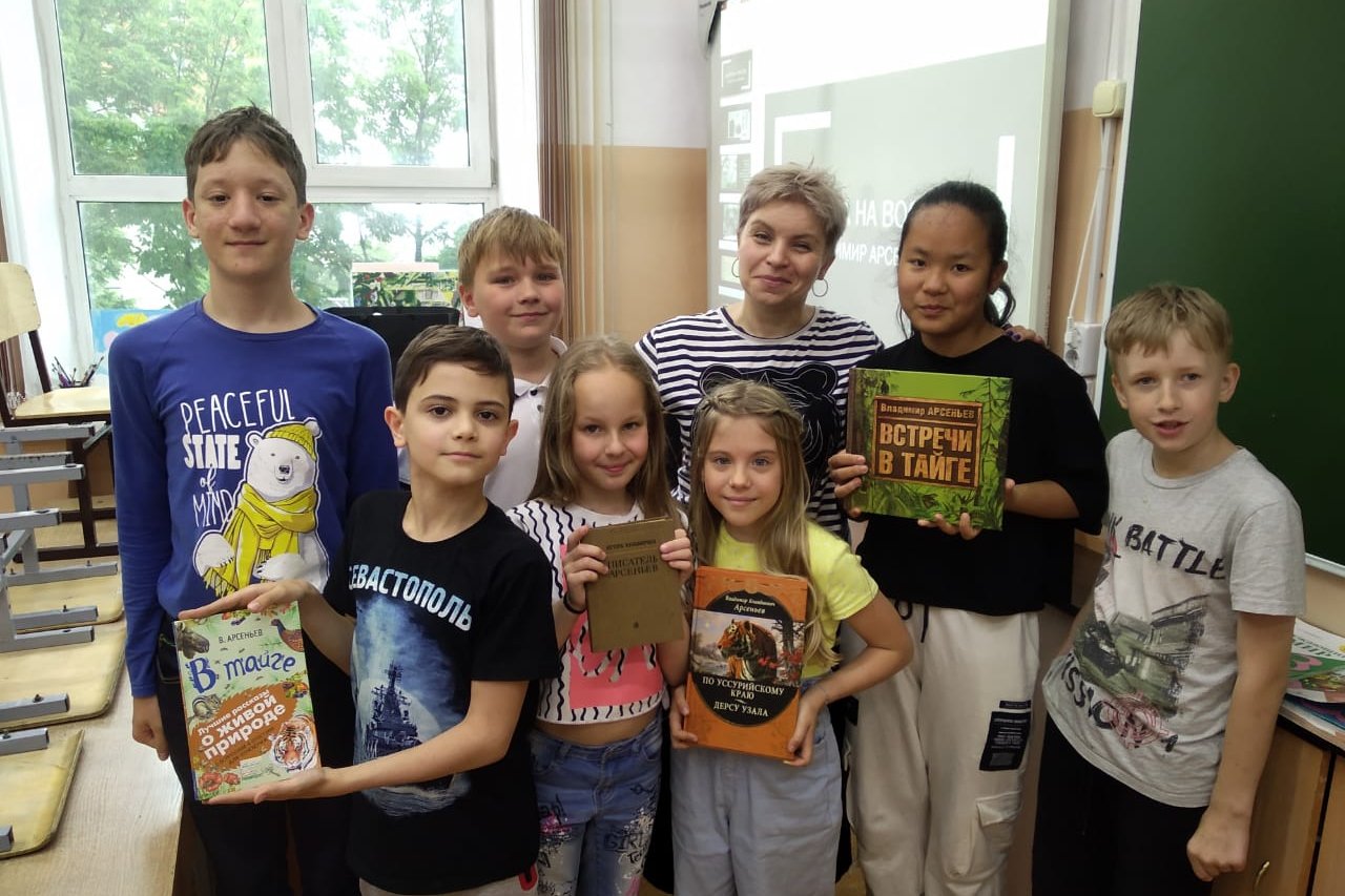 В рамках сотрудничества и организацией летних образовательных мероприятий, к 150 годовщине со дня рождения В.К. Арсеньева сотрудники библиотеки им. А.С. Пушкина (БУК) организовали и провели для детей пришкольного лагеря школы №9 в конце июня час краеведения «Дорога на Восток».