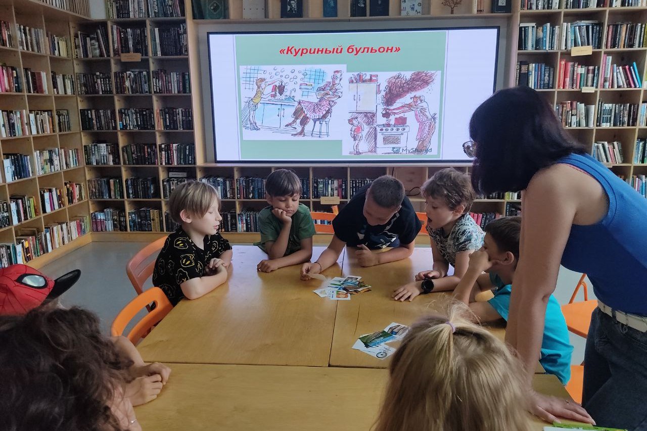 5 июля в библиотеке им. А.С. Пушкина (БУК) прошел познавательный час для детей из пришкольного лагеря развивающего центра «Карапуз-академия», посвященный 110-летию со дня рождения детского писателя Виктора Драгунского.