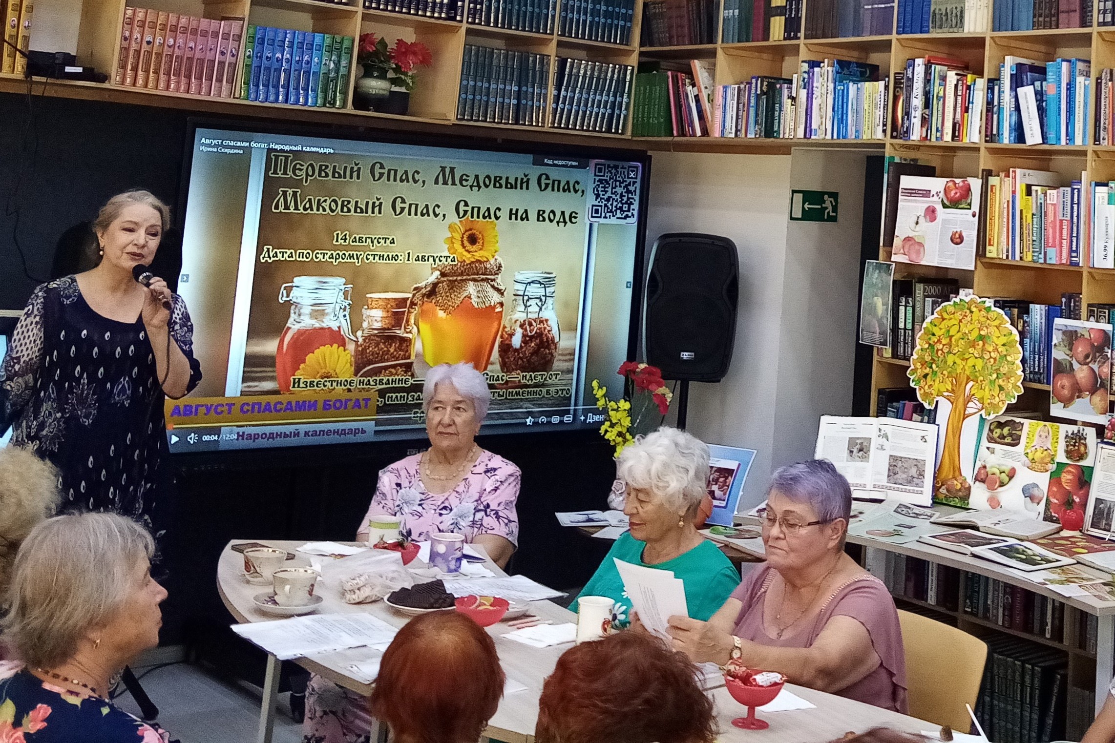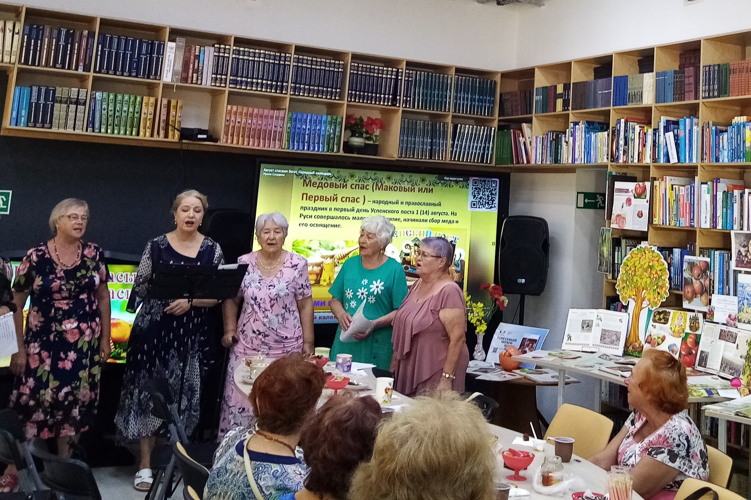 Гости мероприятия узнали, что означает слово «Спас», почему так названы праздники, какие православные праздники отмечаются в августе, узнали интересные факты о меде и пчелах, вспомнили «яблочные» сказки и истории, пословицы и поговорки о хлебе, узнали о народных примерах праздников. Гости совершили виртуальное путешествие по традициям Медового, Яблочного и Орехового (хлебного) спасов. Собравшиеся вспомнили все книги, где упоминается о яблоках, о яблонях. Все присутствующие угостились новым урожаем сладких, наливных яблок, медом, орехами и вкусными пирогами. В течение августа библиотекари знакомили читателей с книжно-иллюстрированной выставкой «Три спаса августа: мёд, яблоки и хлеб».