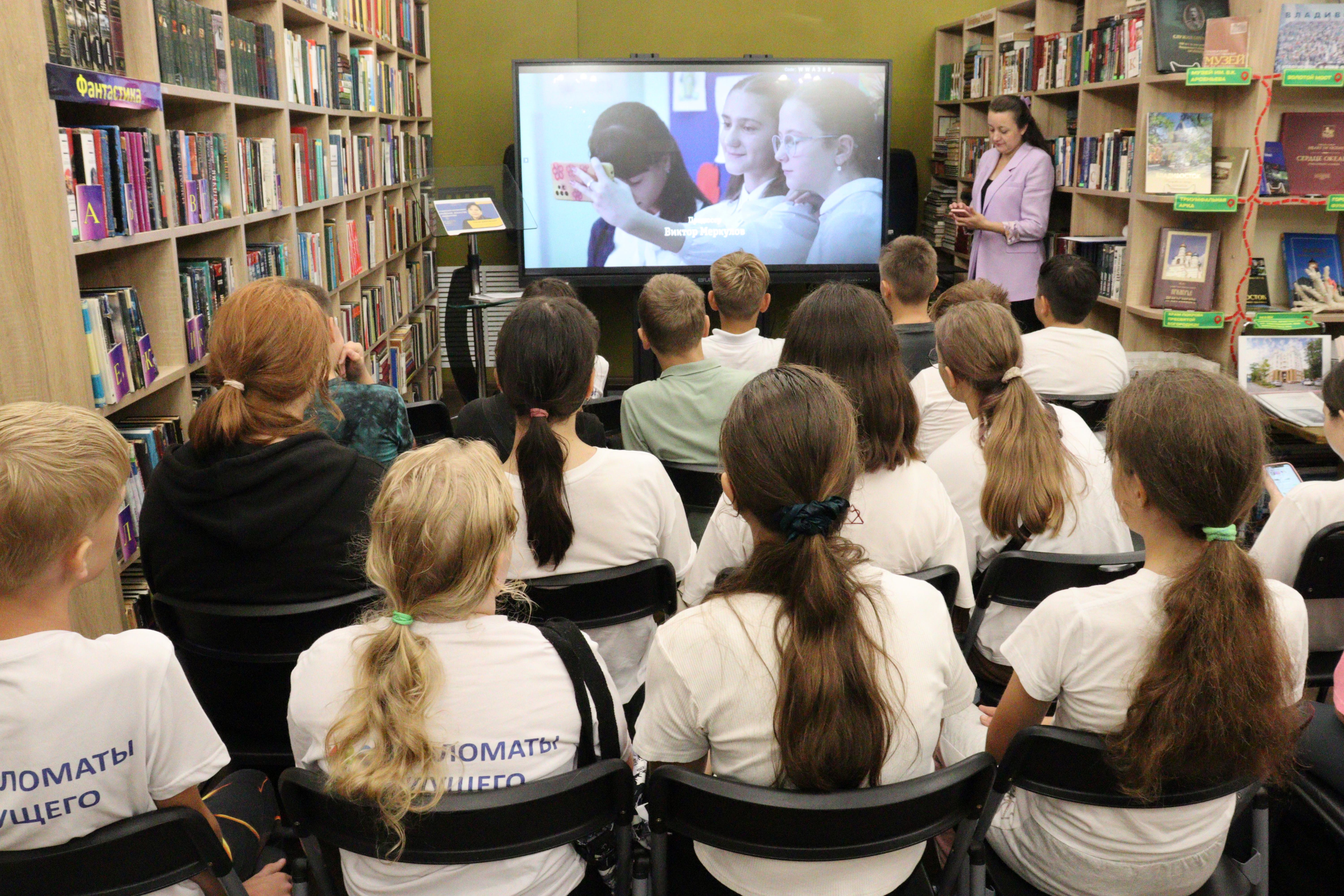 На протяжении первой учебной недели в библиотеке на Светланской для учащихся 2, 5-6 классов МБОУ «СОШ № 22» и «СОШ № 57» состоялись просмотры киноуроков с обсуждением в рамках проекта библиотеки «Разговоры о важном» и Всероссийского народного проекта «Киноуроки в школах России».