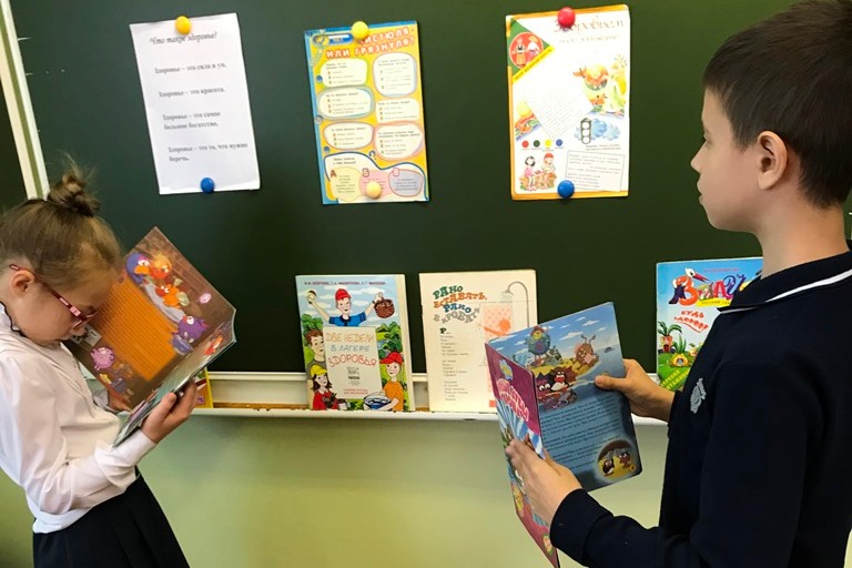 Школьников чрезвычайно заинтересовала книга Николая Коростелева «50 уроков здоровья для маленьких и больших». Они узнали, как правильно бороться с простудой, для чего нужен носовой платок, как устроить «домашний стадион», почему полезно ходить босиком, вели разговор о том, что детям особенно вредно курение и алкоголь, поэтому их даже нельзя ни пробовать, ни начинать.