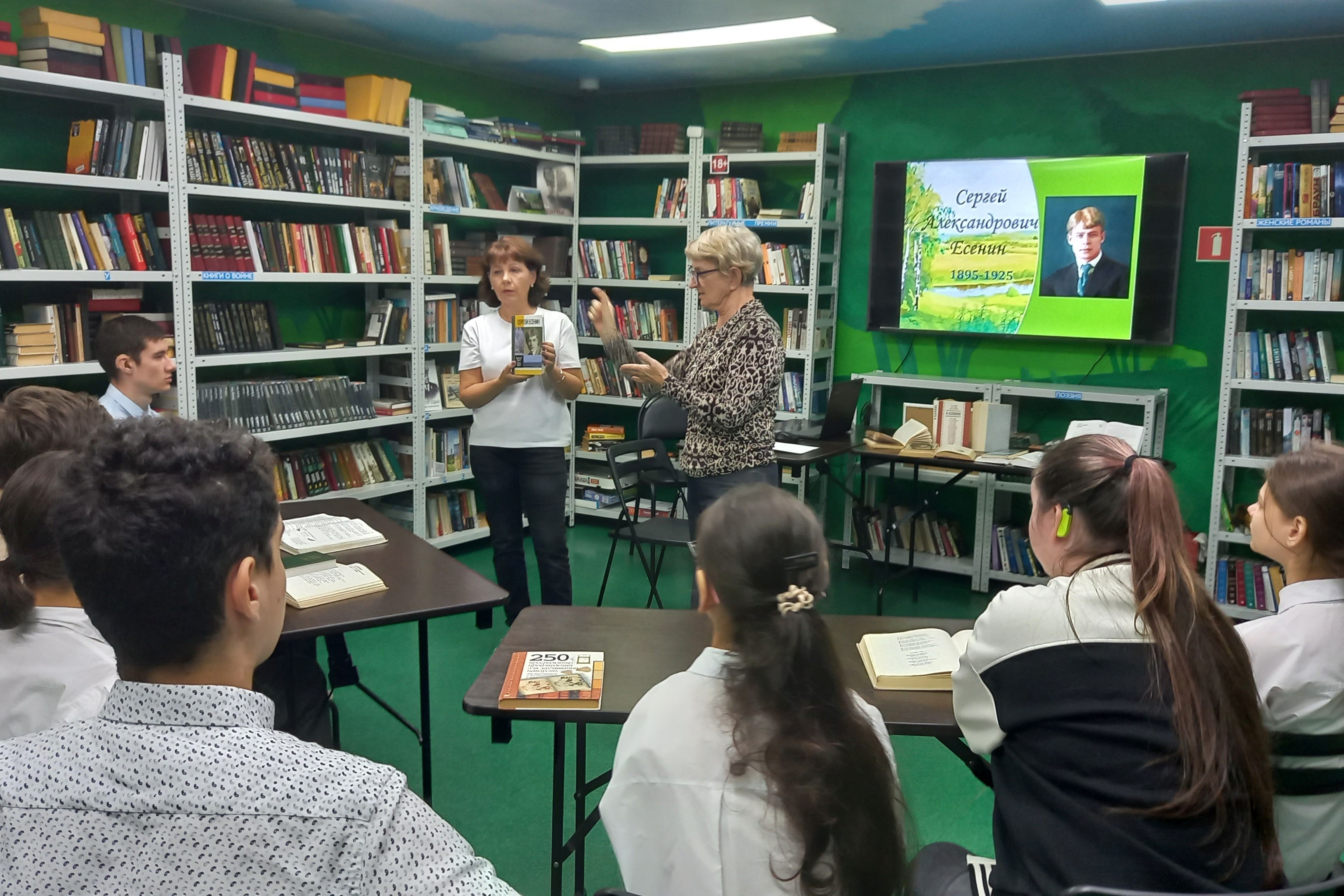 В библиотеке №17 (ул. Иртышская, 42) прошел литературный час «Сергей Есенин — наш поэт». Гостями мероприятия стали старшеклассники КГОБУ «КИШ 1 вида». Ребята познакомились с интересными фактами биографии и творчества поэта, о его жизни в Константинове, учебе в Спас-Клепиковской школе, московском периоде, первых публикациях и встречах с выдающимися современниками, включая Александра Блока.