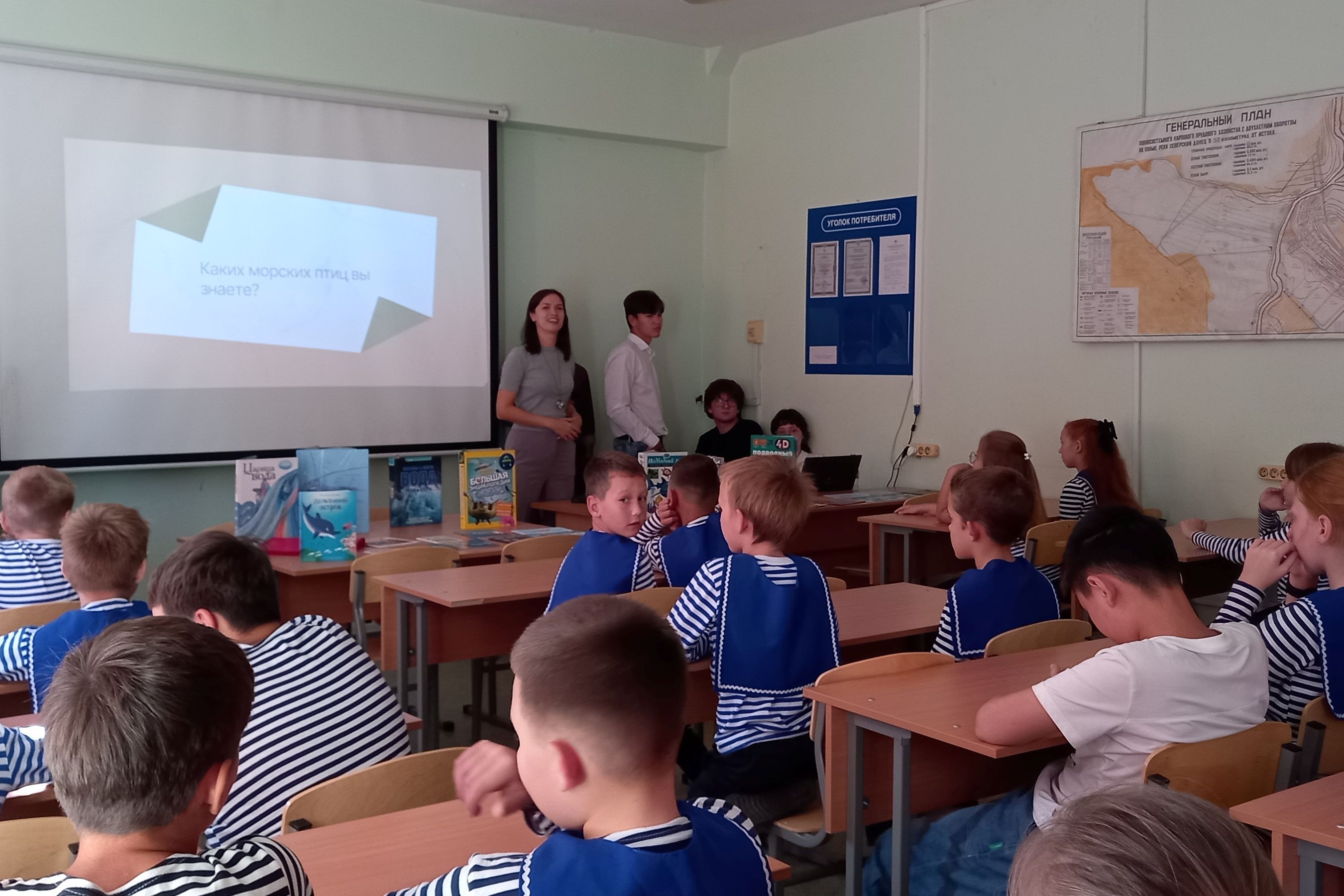 30 сентября и 2 октября на кафедре «Водные биоресурсы и аквакультура» ФГБОУ ВО «Дальрыбвтуз» (ул. Луговая, 52Б) в рамках программы «Обучение служением» (введение в профессию) студентами первого курса и библиотекарем МБУК «ВЦБС» библиотеки № 9 (ул. Талалихина, 5) для учеников начальных классов лицея проведены мероприятия в честь Всемирного Дня моря, посвящённые экологической безопасности морских грузоперевозок и биологическому разнообразию Мирового океана, – в частности, библиографический обзор «Тайны моря: погружение в детские книги».