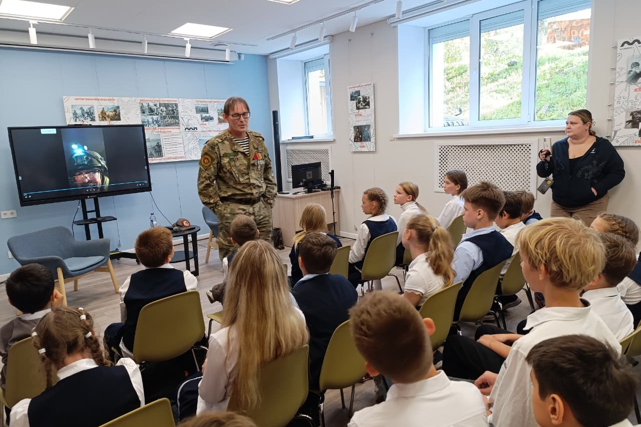 Александр Ильич рассказал и о себе, — о том, как он, учитель, совершенно мирный человек, причем практически пожилой, державший автомат только в армии 40 лет назад, оказался в зоне специальной военной операции. Еще с начала СВО он не остался в стороне, организовал курсы военной подготовки для добровольцев, сборы гуманитарной помощи бойцам, а когда в августе 2024 года представилась возможность –записался в добровольческий отряд «Тигр» и стал фельдшером с позывным «Учитель» в эвакуационной группе, на Курском направлении. Там, спасая своих боевых товарищей, он ощутил себя настоящим защитником Отечества.