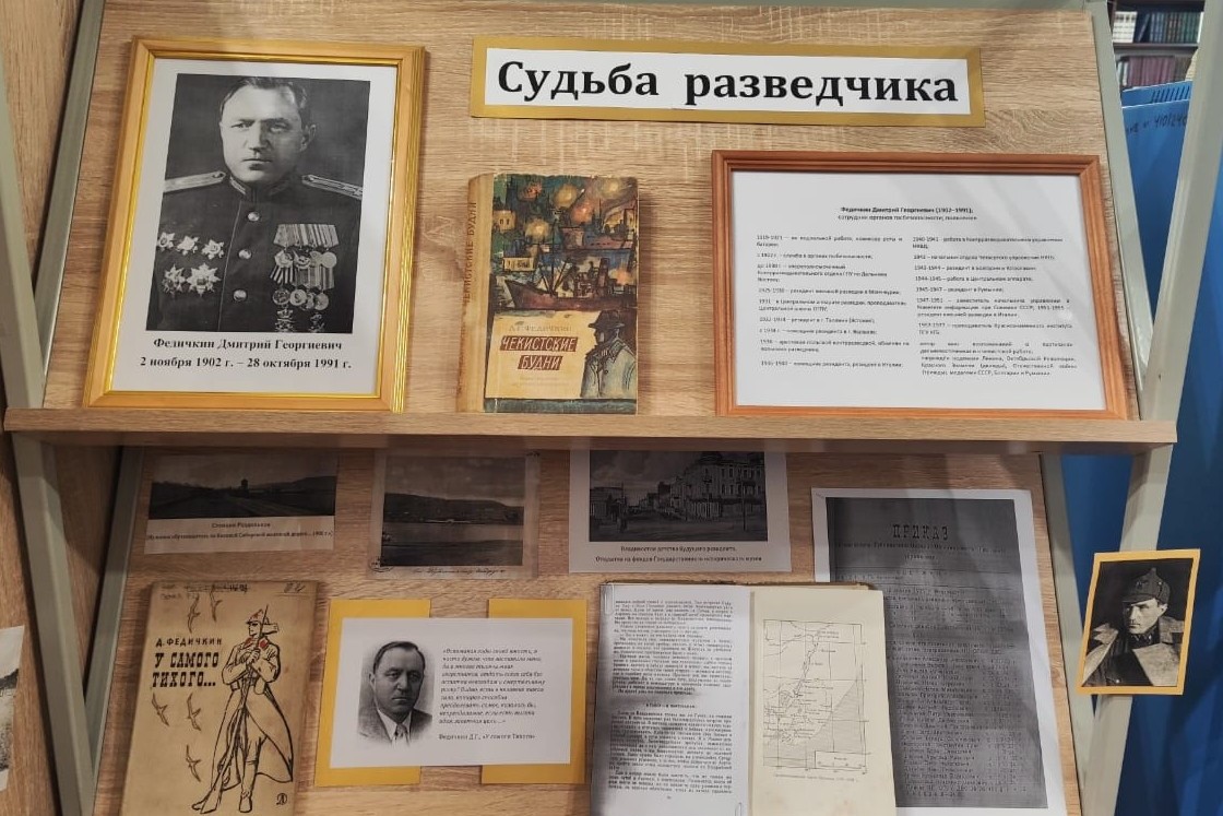2 ноября в библиотеке № 10 (ул. Верхнепортовая, 76) состоялось открытие книжной выставки «Судьба разведчика», посвященная памяти Дмитрия Георгиевича Федичкина ― советского разведчика, полковника и приуроченная к его 123-летию со дня рождения.