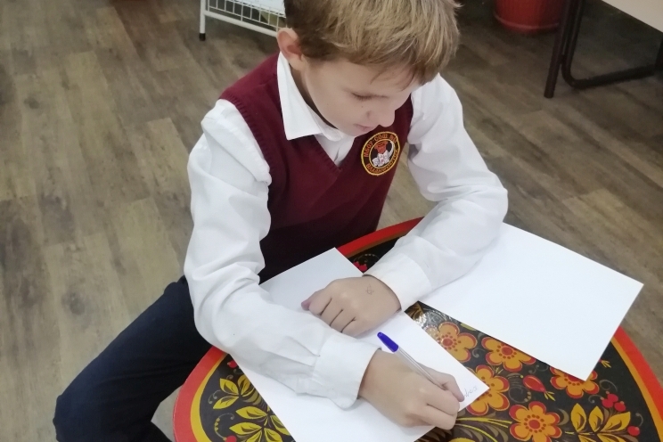 А затем прошла «акция памяти». «Что бы ты сказал ветерану войны, в его лице всем, кто не вернулся?» Ребята на одном листе, перегибая его, писали свои пожелания. А те, кому не хватило времени, продолжат это в классе. Зачитываем коллективное письмо полностью. «Мы победили, спасибо вам!», «В нашей семье помнят дедушку и дядю, прошедших войну», «Если случится, мы тоже постоим!» Письмо запечатано в треугольный конверт и будет хранится в классных документах, чтобы потом другие ребята, которые придут здесь учиться, читали и дополняли его.