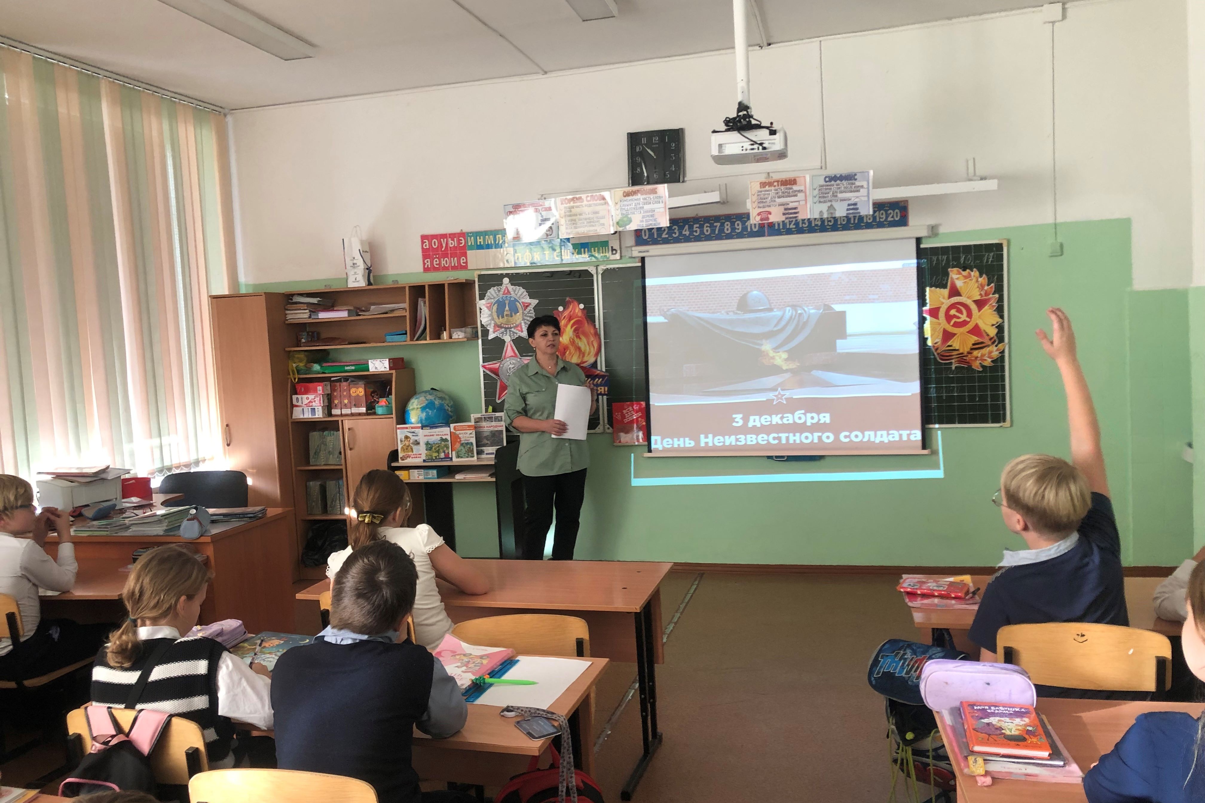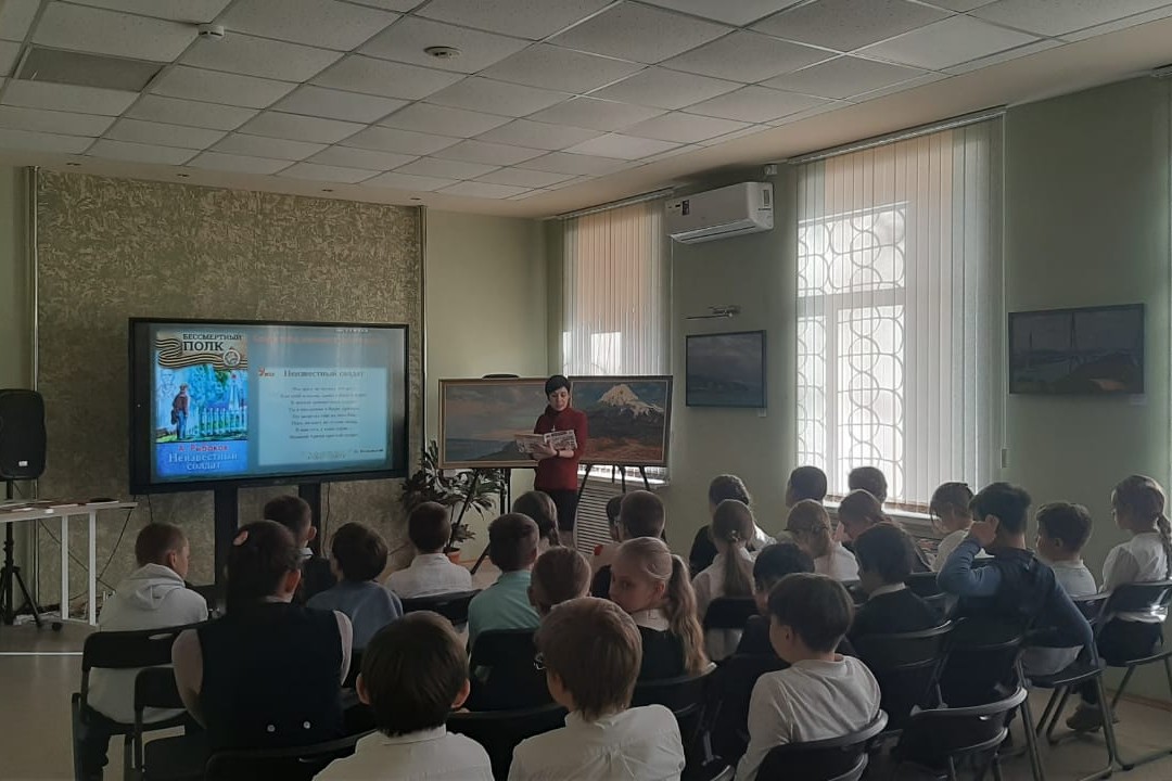 Библиотека № 2 провела час памяти «Вечно живой» для детей СОШ № 70 п. Трудовое. Ребята узнали, что могила Неизвестного Солдата появилась у кремлёвских стен в 1967, в честь 25-летия разгрома немецких войск под Москвой. Школьники посмотрели видео о смене почетного караула, который происходит каждый час у могилы Неизвестного Солдата. С ребятами провели беседу о символике Вечного огня и вспомнили несколько объектов мемориального комплекса на Корабельной набережной в нашем городе, которые посвящены подвигу жителей Приморья во время Великой Отечественной войны. Школьникам прочитали рассказы Сергея Алексеева «Подвиг неизвестного сапёра» и «Мешок овсянки» Анатолия Митяева.
