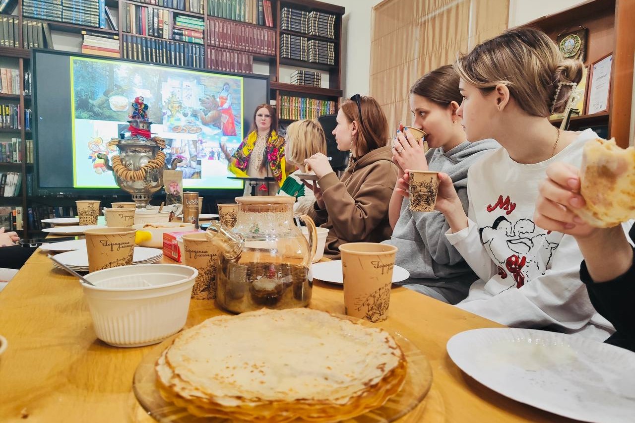 В библиотеке № 10 (ул. Верхнепортовая, 76) состоялась 4 марта беседа «Масленица — Комоедица» со студентами МГУ имени адмирала Г.И. Невельского, обучающимися по направлению «Социально-культурная деятельность».