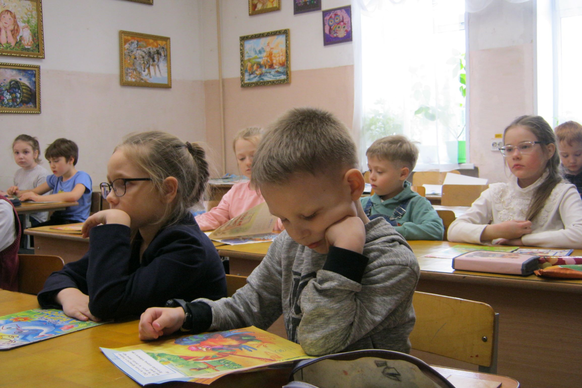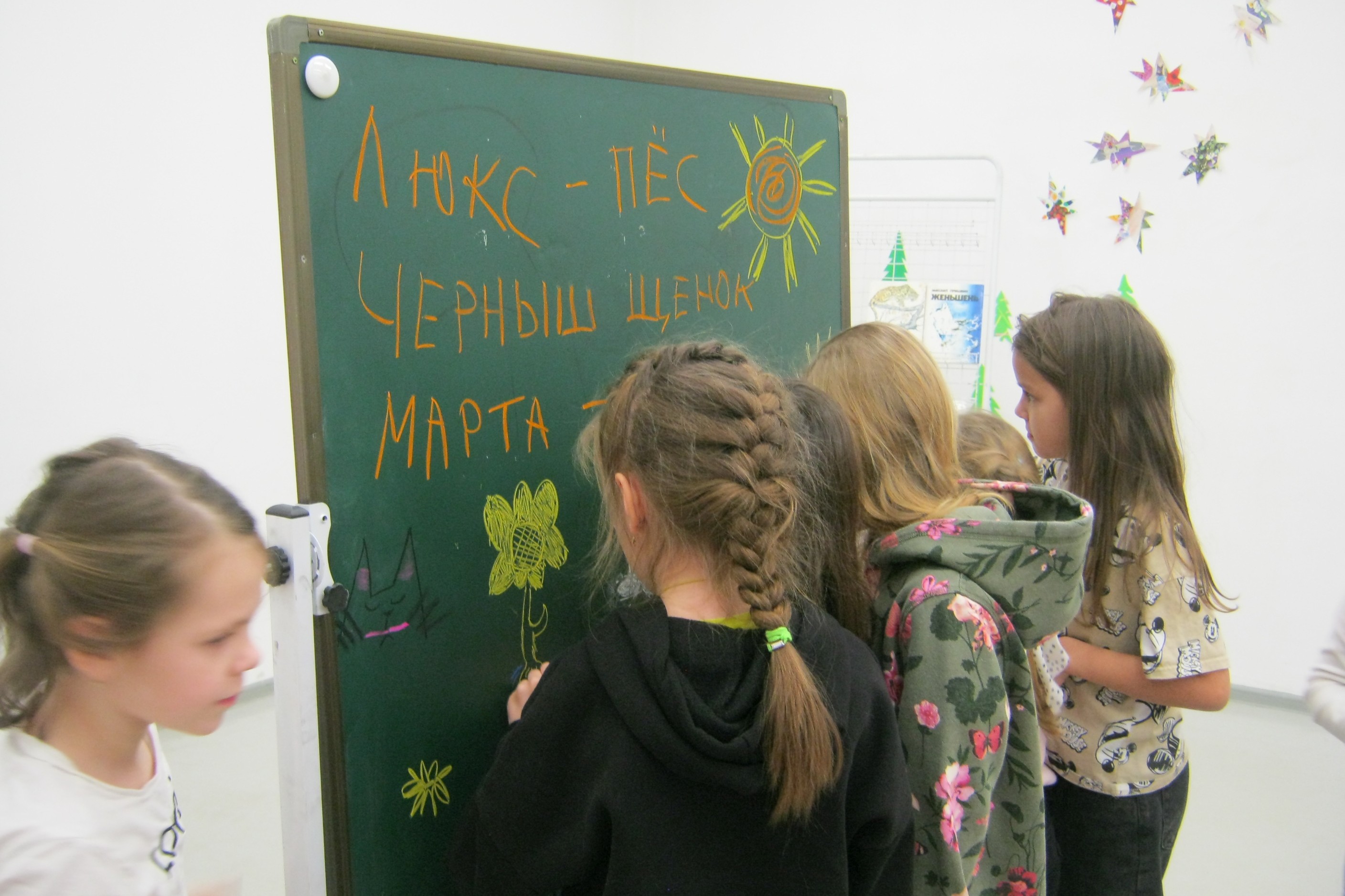 На занятие к первоклассникам в центр развития творчества детства и юношества библиотека пришла сама и принесла кипу сказок. Каждому на уроке досталось по книжечке, тоненькой, с одной сказкой, можно было полистать, посмотреть иллюстрации, обменяться с соседом и еще успеть ответить на вопросы сказочной викторины. А кому хотелось еще больше ребусов и загадок, тех библиотека ждала к себе в гости во время школьных каникул: можно было не только выполнить задания из журналов «Веселый затейник», но и смастерить зверюшку из цветной бумаги на творческой мастерской, освоить азы игры в Го.